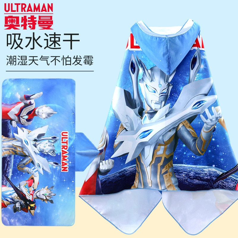 Ultra, Ультрамен Тига для ванны, банное полотенце, плащ, быстросохнущая детская пляжная шапка для мальчиков для плавания, хорошо впитывает воду