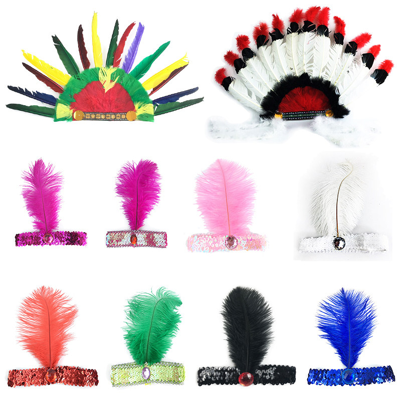 Хэллоуин красочные перо таблетки страуси волосатые шляпы День благодарения перья, хиральный главный ветераны Индийский отдел
