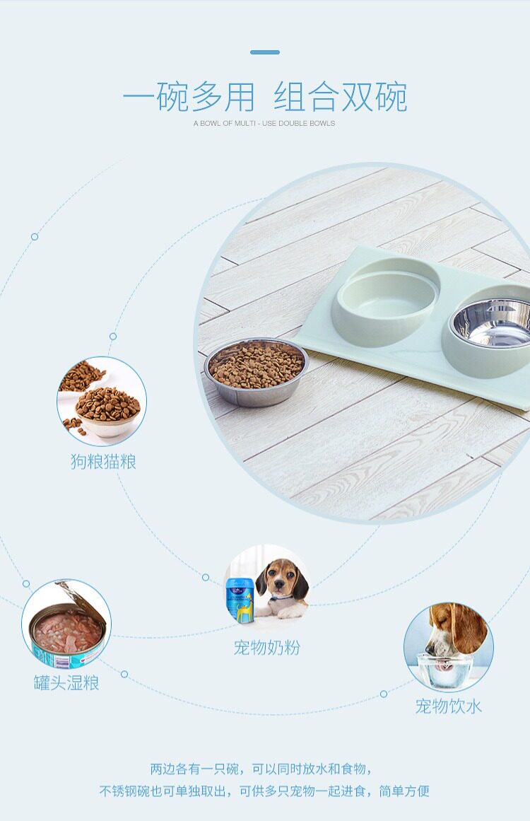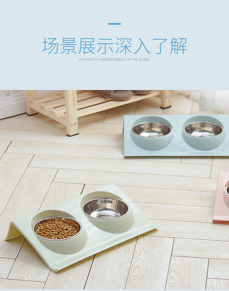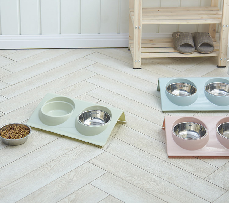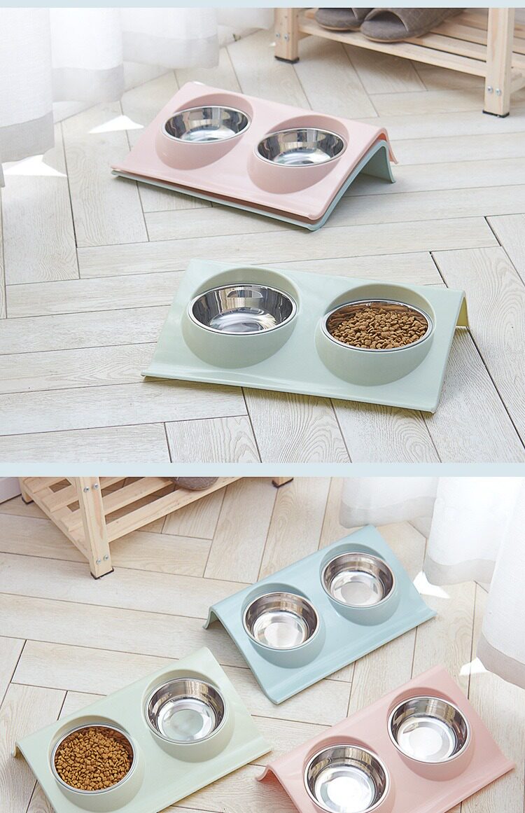 Симпатичная собачья чаша для собак из нержавеющей стали Диагональная рот двойная миска с накисленной горшкой плюшевая и средняя собачья.