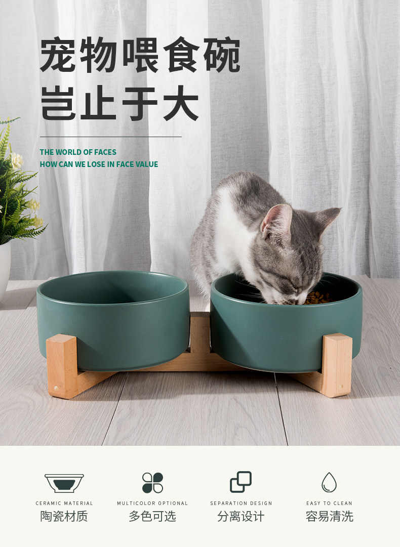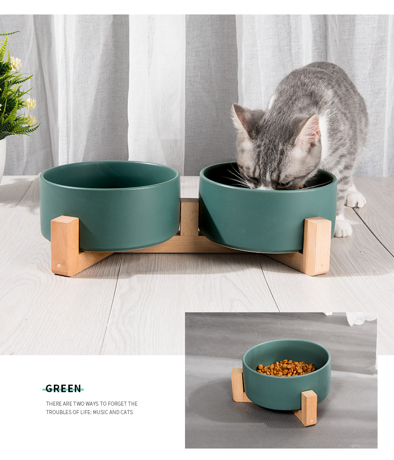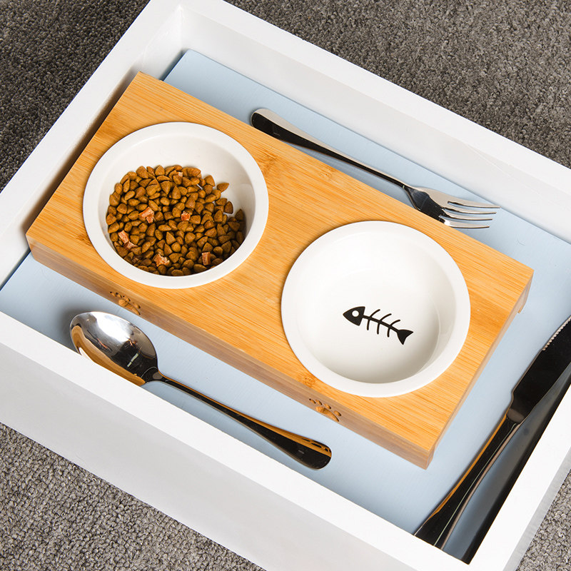 Кошачья чаша с двойной миской керамический напиток вода, чтобы съесть двух -кошачья продукта кошачья продукт кошка Антиочищенная кошачья рисовая чаша Специальная миска с едой.