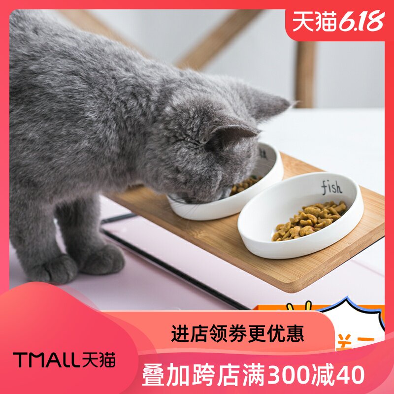 Маленькая кошачья чаша кошачья чаша ноздри и анти -бандал -керамическая керамическая керамическая анти -перевернутая три миски с твердой древесиной милой утечка -наклонная миска с наклонными мисками