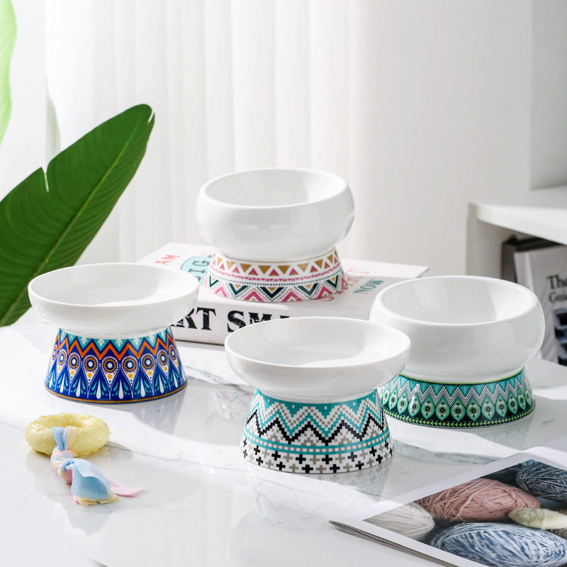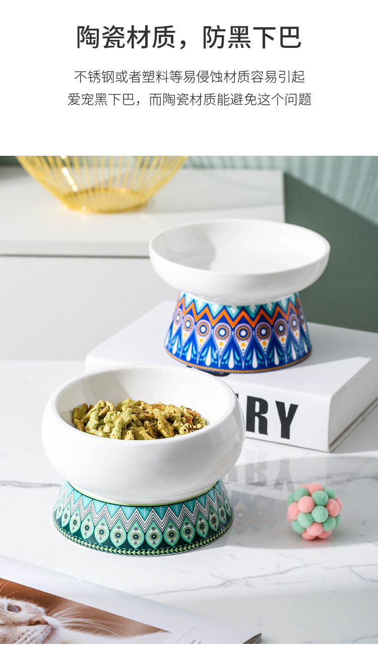Керамическая кошачья чаша защитные шейки матки шейки матки, собачья чаша для домашних животных Позмианская анти -табличная косая кошачья вода миска