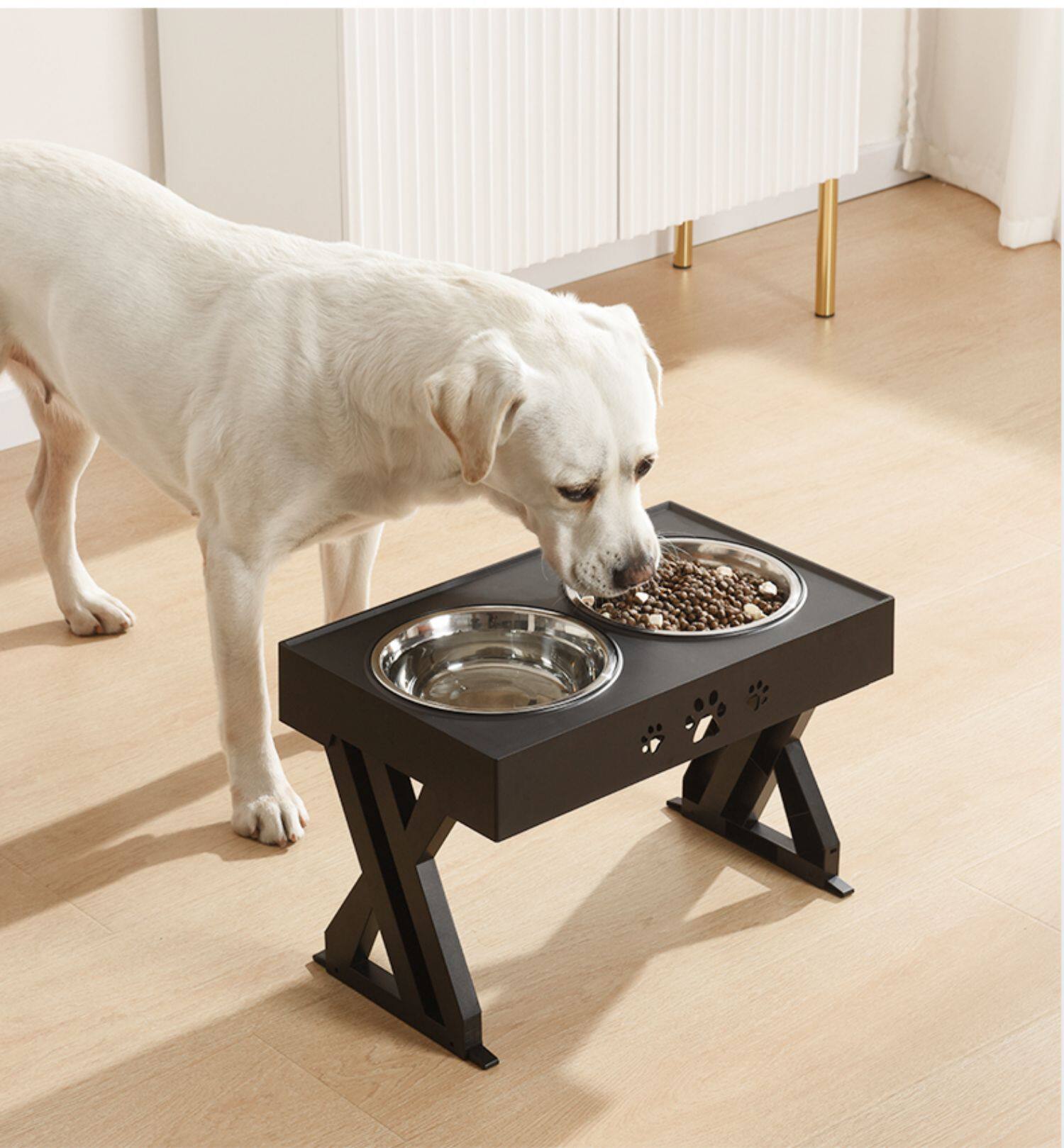 Дела для собак миска пищевая бассейн с двойной миской с двойной миской большой собака против зерновой стали напиток вода для домашних волос с золотыми волосами.