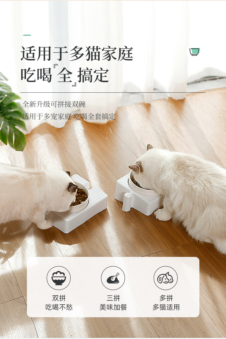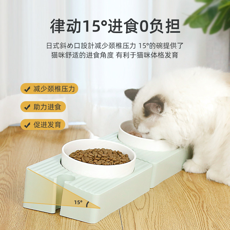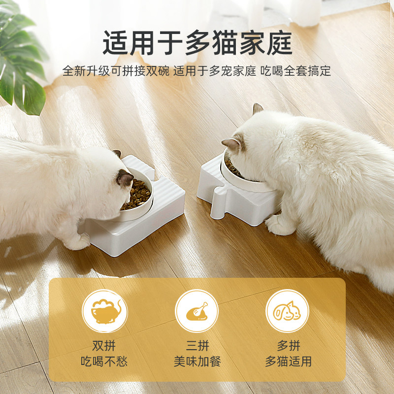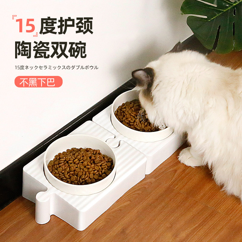 Керамическая двойная миска для кошек: миска для кошачьего корма, миска для собаки, миска для кошачьего риса, миска для кошачьего корма и миска для кошачьей воды, защищает шейный отдел позвоночника и предотвращает опрокидывание миски для домашних животных.