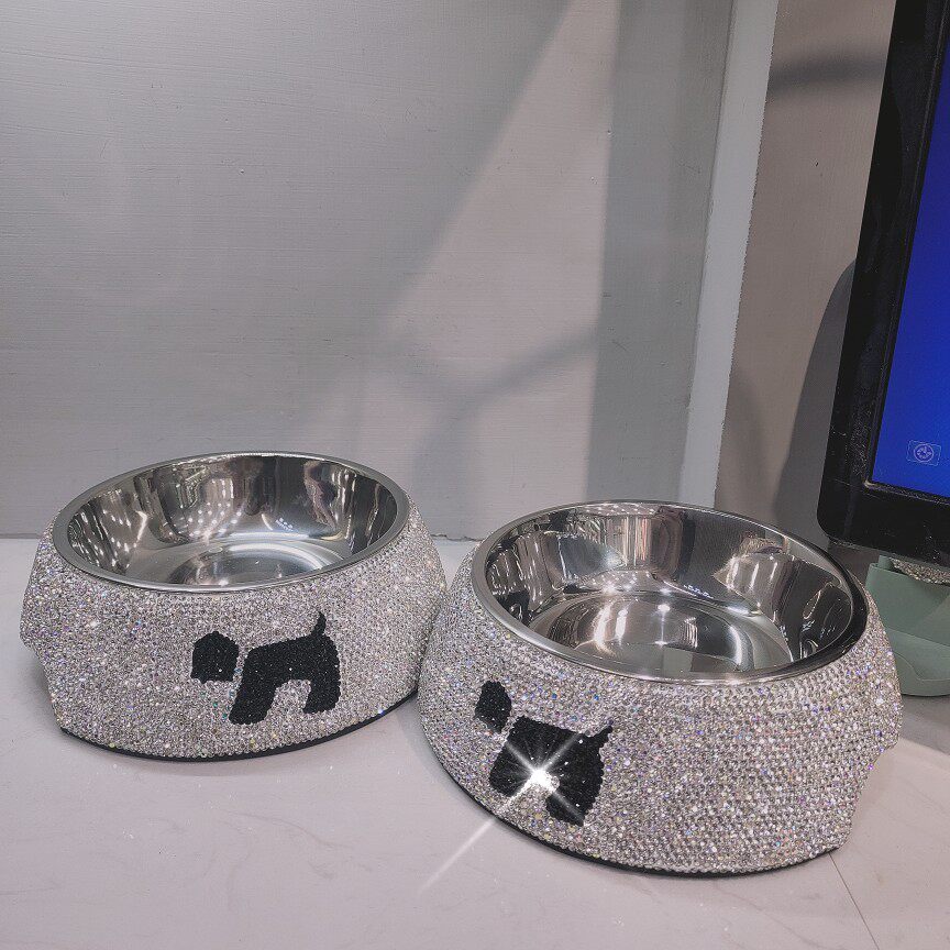 Собачья чаша нержавеющая сталь двойная чаша кошачья чаша Light Роскошные алмазные домашние животные выпить воду для кошачья собачья миска для собачьей корм для собак, чтобы предотвратить опрокидывание