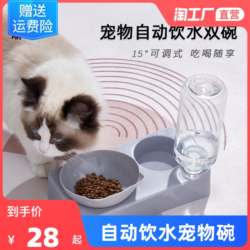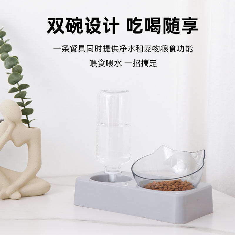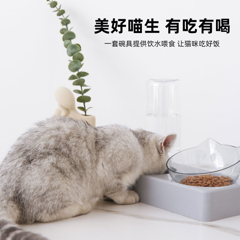 PetJoker Cat Bowl Автоматическая питьевая вода чаша для питомца Двойная чаша с наклонной водой водой для защиты шейного отдела позвоночника