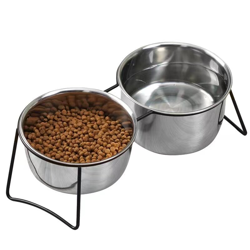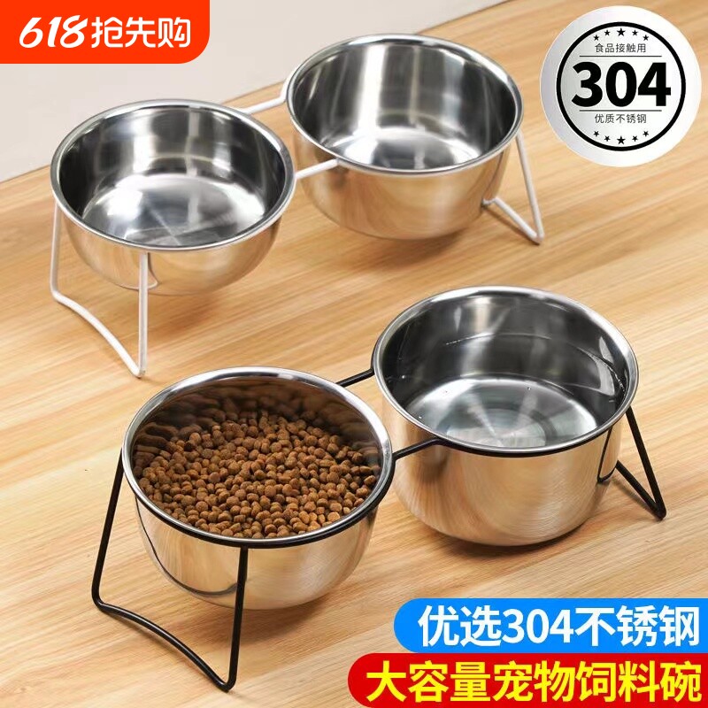 Двойная миска для кошек, миска для корма для собак, нержавеющая сталь 304, железный каркас для собак, защита шеи, предотвращающая опрокидывание миски для собак, защита резервуара для воды «два в одном»