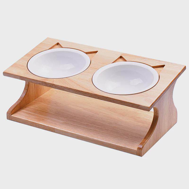 Кошачья чаша керамика с двойной миской кошачьи пищевые бассейн наклонный шея из нержавеющей стали для собачьей чаша вода чаша с твердым деревом на полке
