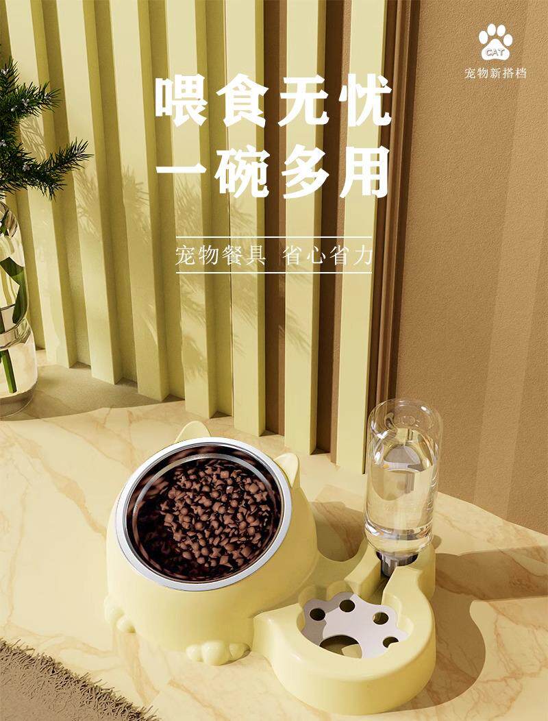 Кошачья чаша, чаша для еды, чаша для собак, чаша для собак, двойная миска для кошки, автоматическая питьевая вода, питьевая вода, интегрированная анти-ламка, защита шеи, рисовая миска для домашних животных