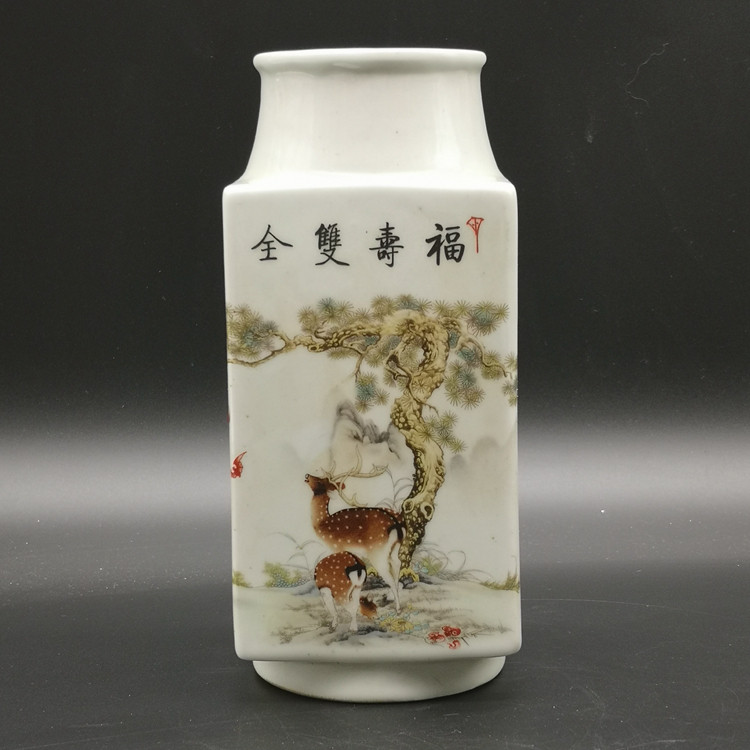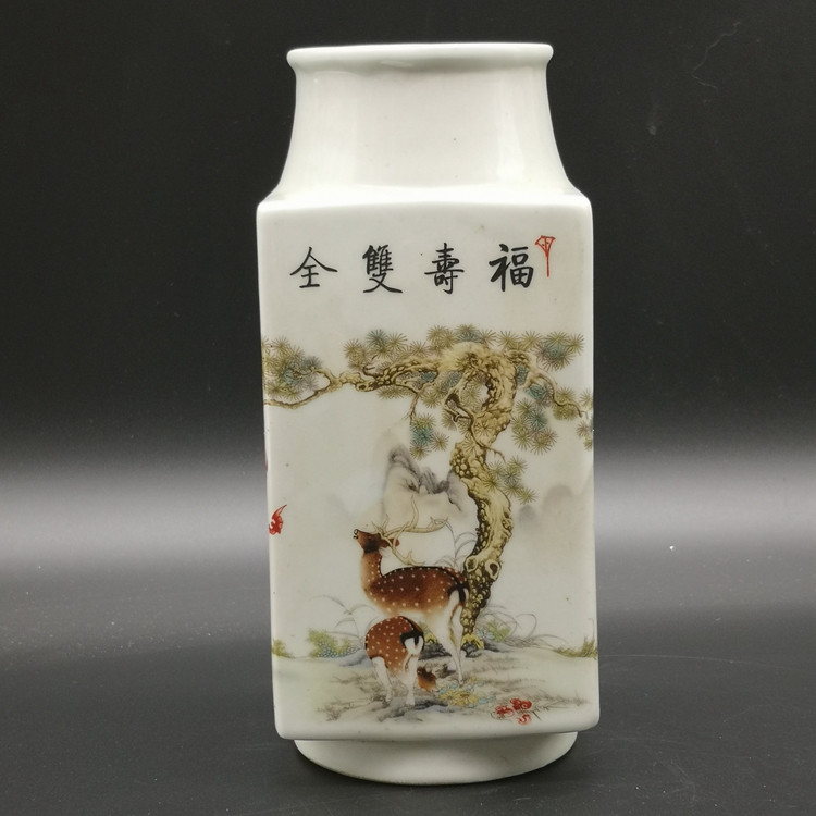 Пастели, фушу, двойные полные четыре квадратные вазы, антиквариат, антиквариат, антиквариат, благоприятное украшение, денежные украшения