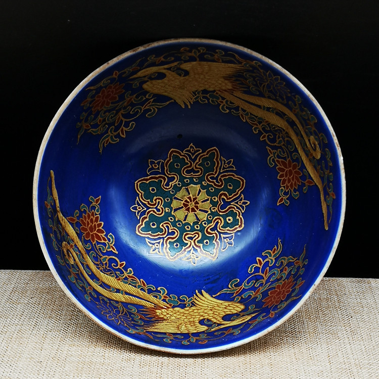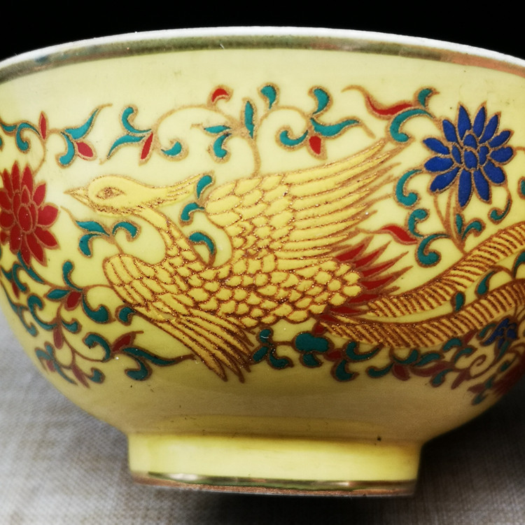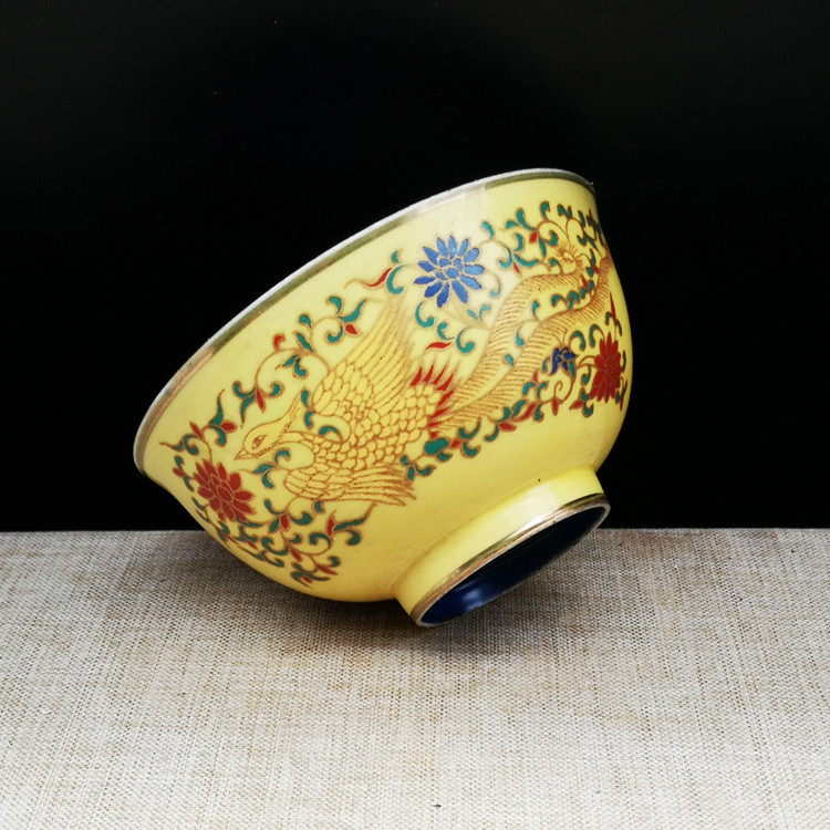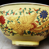 Действие Ченхуа, ежегодная желтая глазурь, красочный цветок схема феникса антикварного фарфорового антиквариата