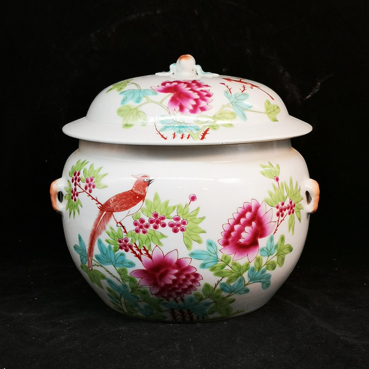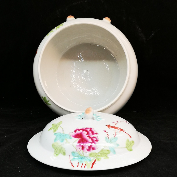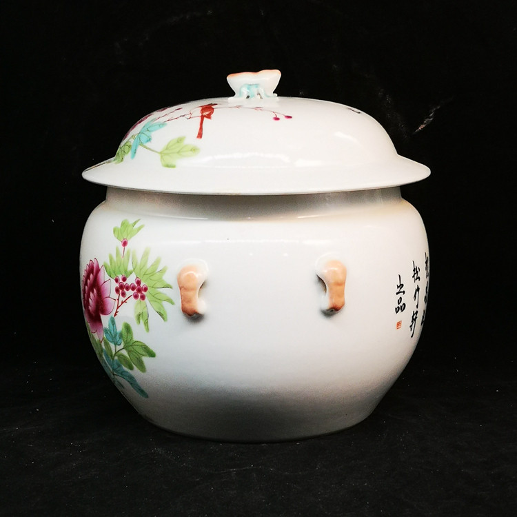 Республика Китая розовые цветочные птицы с четырьмя сериями Cover Cipridge House Античный фарфоровый антикварная антикварная коллекция Аутентичные старые предметы украшения