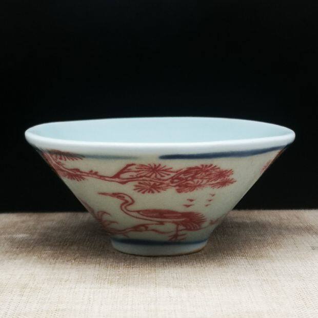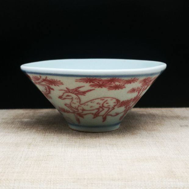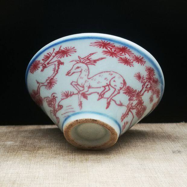 В пятилевой глазурьи на людях, оленей с красным краном Tongchun Dou Cup, антикварные чайные бокалы винные бокалы антикварные старые предметы