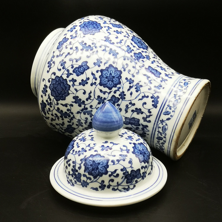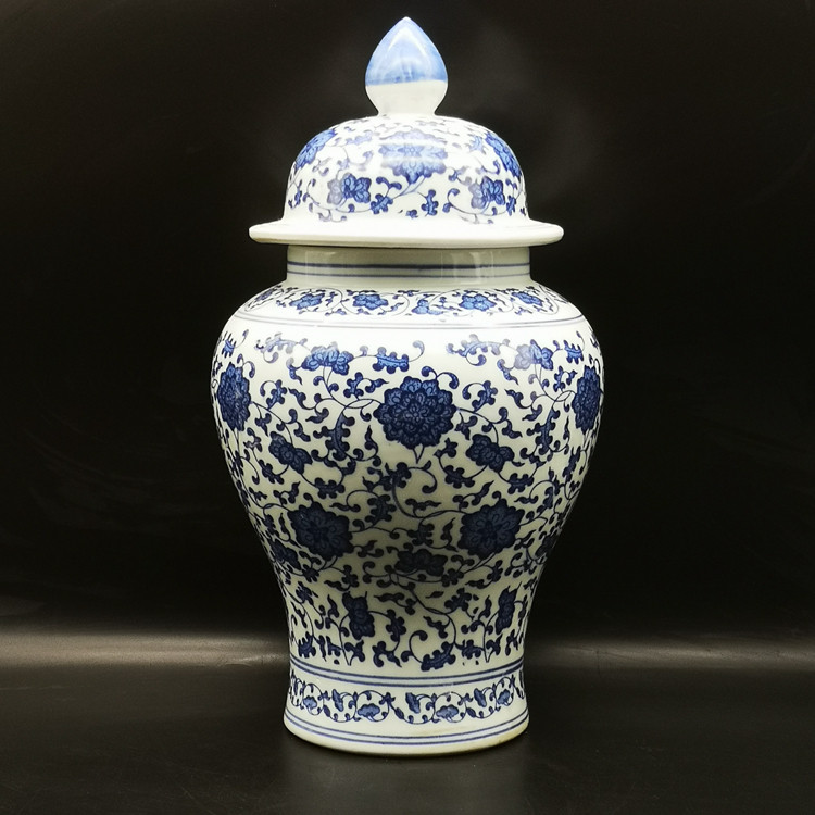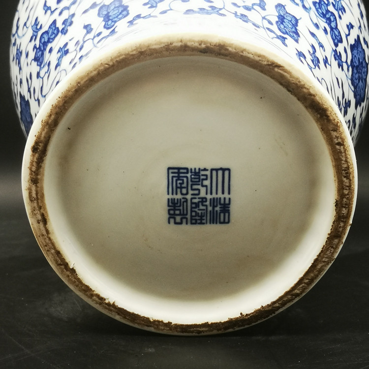 Цин Ганлонг Синий и Синий Синий Блюс Блуинг Лотос Лотос Узор Бар Дом Бо Гуджу Ваза Ваза Античная коллекция