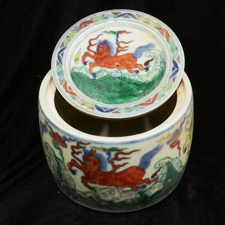 Танки династии Ming Chenghua Doucai Horse Corse Pattrafs Бар альтернативный фарфоровый фарфор бедный старый старый старый старый сбор