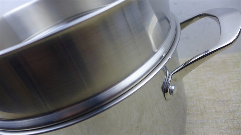 Это пароварка 3-го уровня, что означает, что ее можно адаптировать для кастрюль трех размеров: 24 см, 22 см и 20 см. Это очень удобно в использовании. Однако, поскольку максимальный внутренний диаметр пароварки составляет 24 см, вам понадобится крышка диаметром 24 см. Пароварка хорошего качества и толстая, поэтому это хороший выбор.
