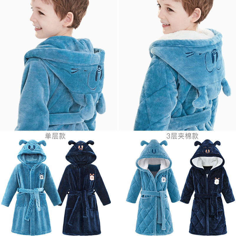 Флисовая детская мультяшная пижама, удерживающий тепло зимний банный халат с капюшоном для школьников, подходит для подростков, 2022