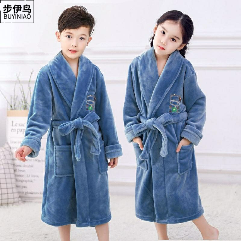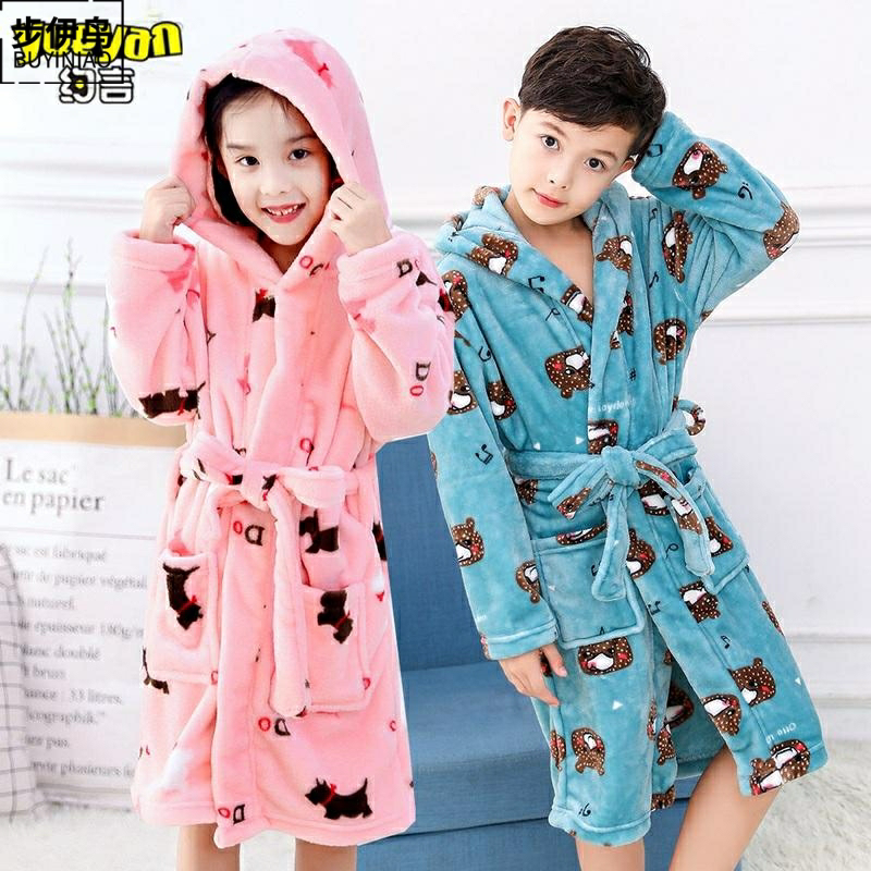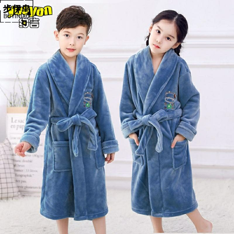 Зимняя фланелевая бархатная пижама, детский банный халат для мальчиков, детская одежда, подходит для подростков, увеличенная толщина