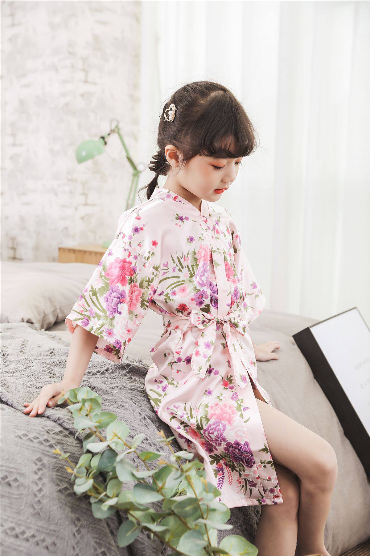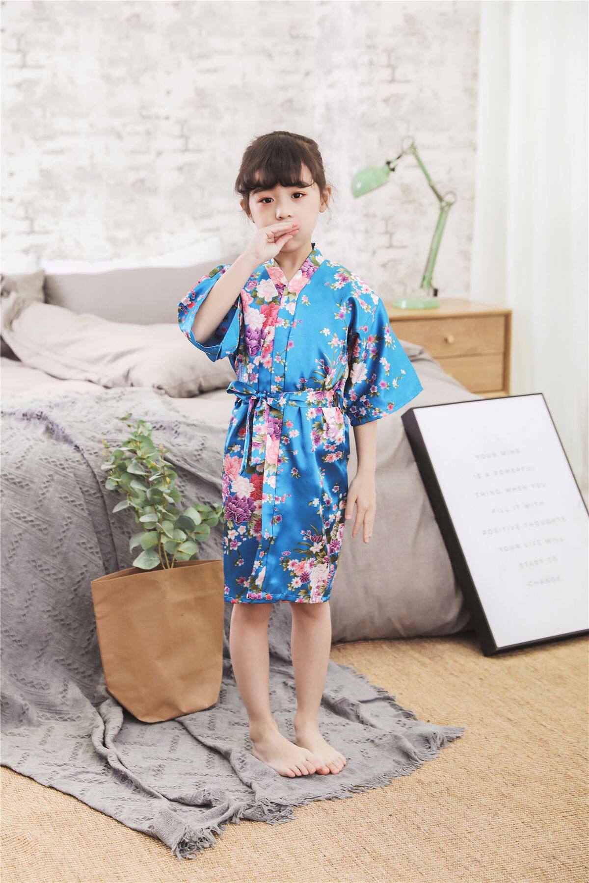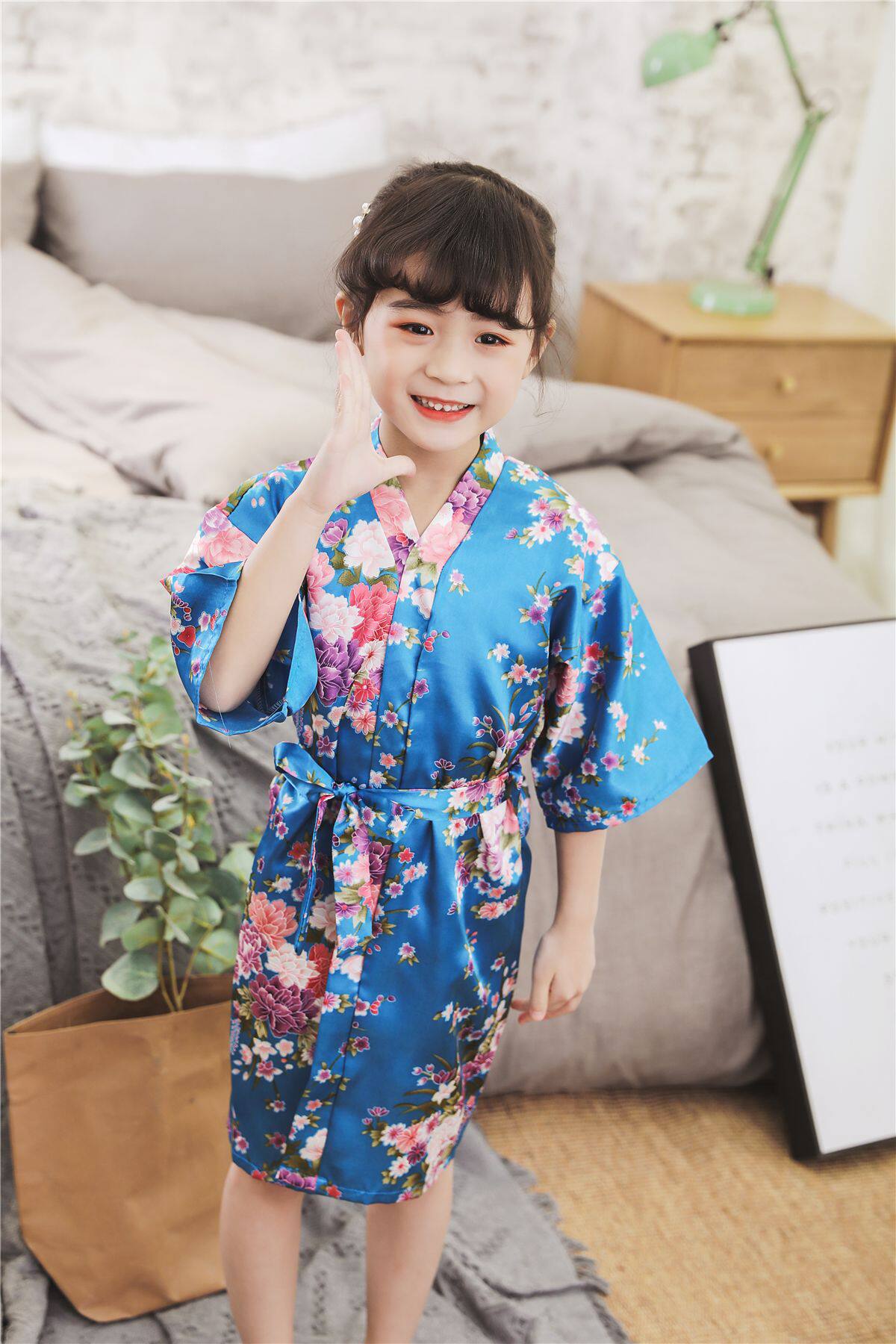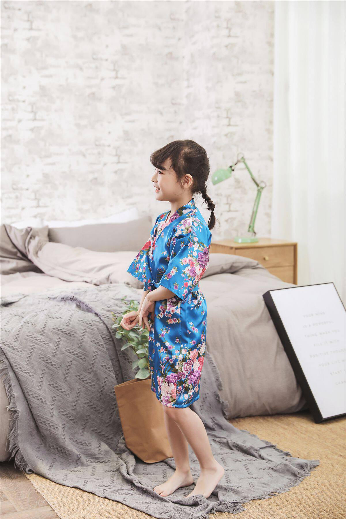 Летний детский шелковый банный халат для девочек, японская пижама, семейный стиль