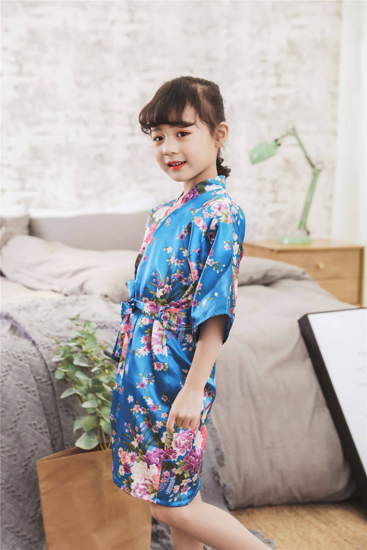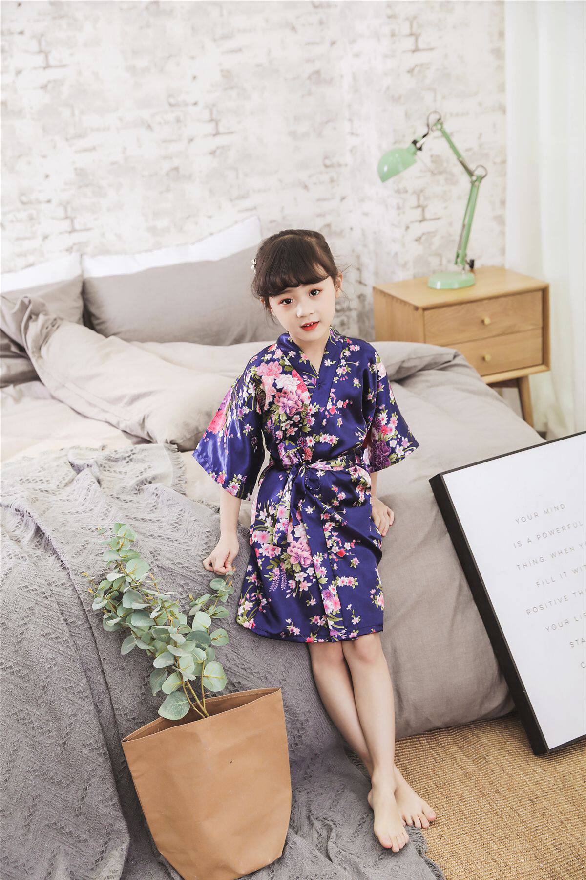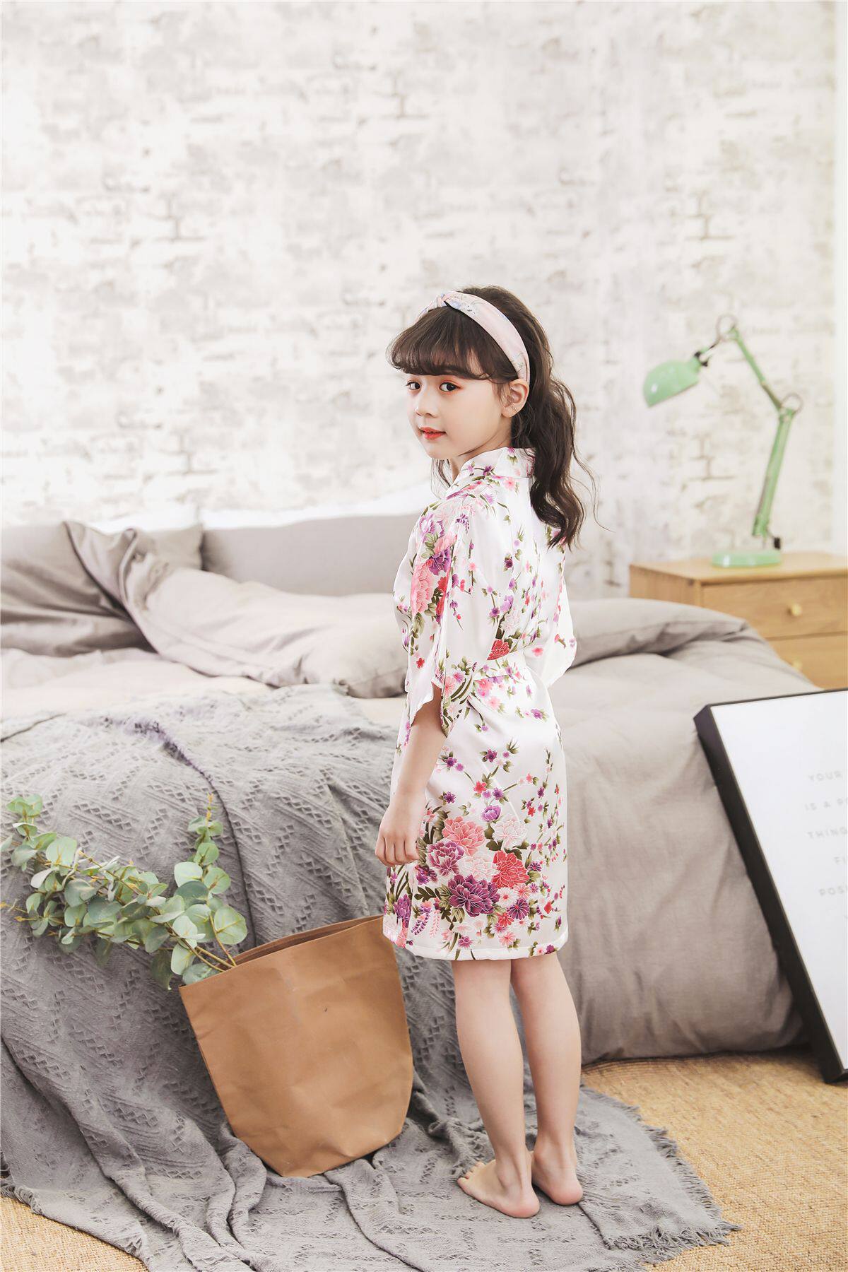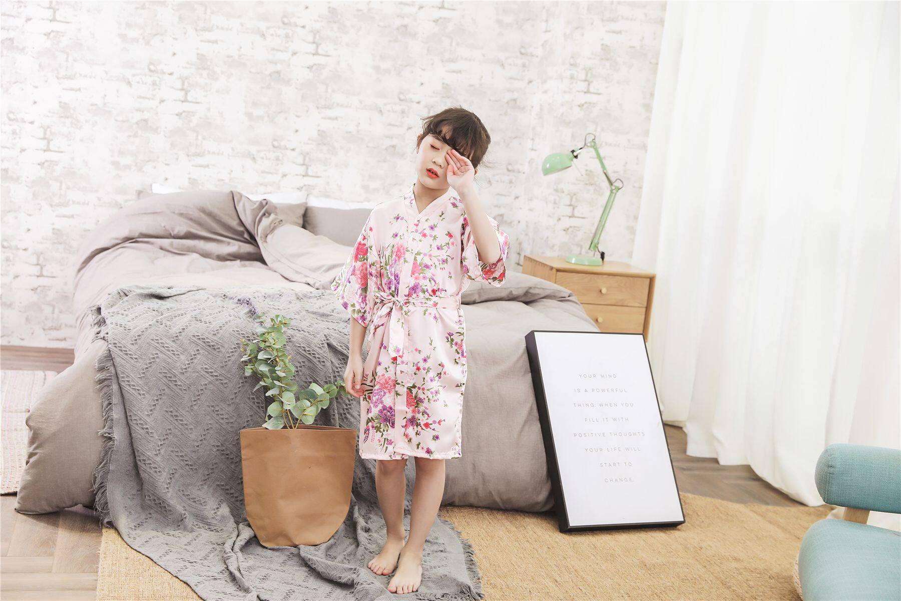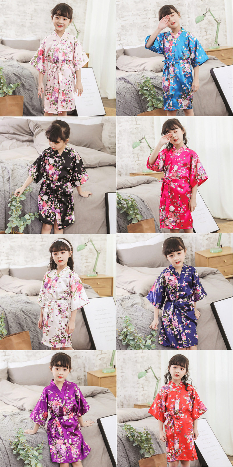Летний детский шелковый банный халат для девочек, японская пижама, семейный стиль