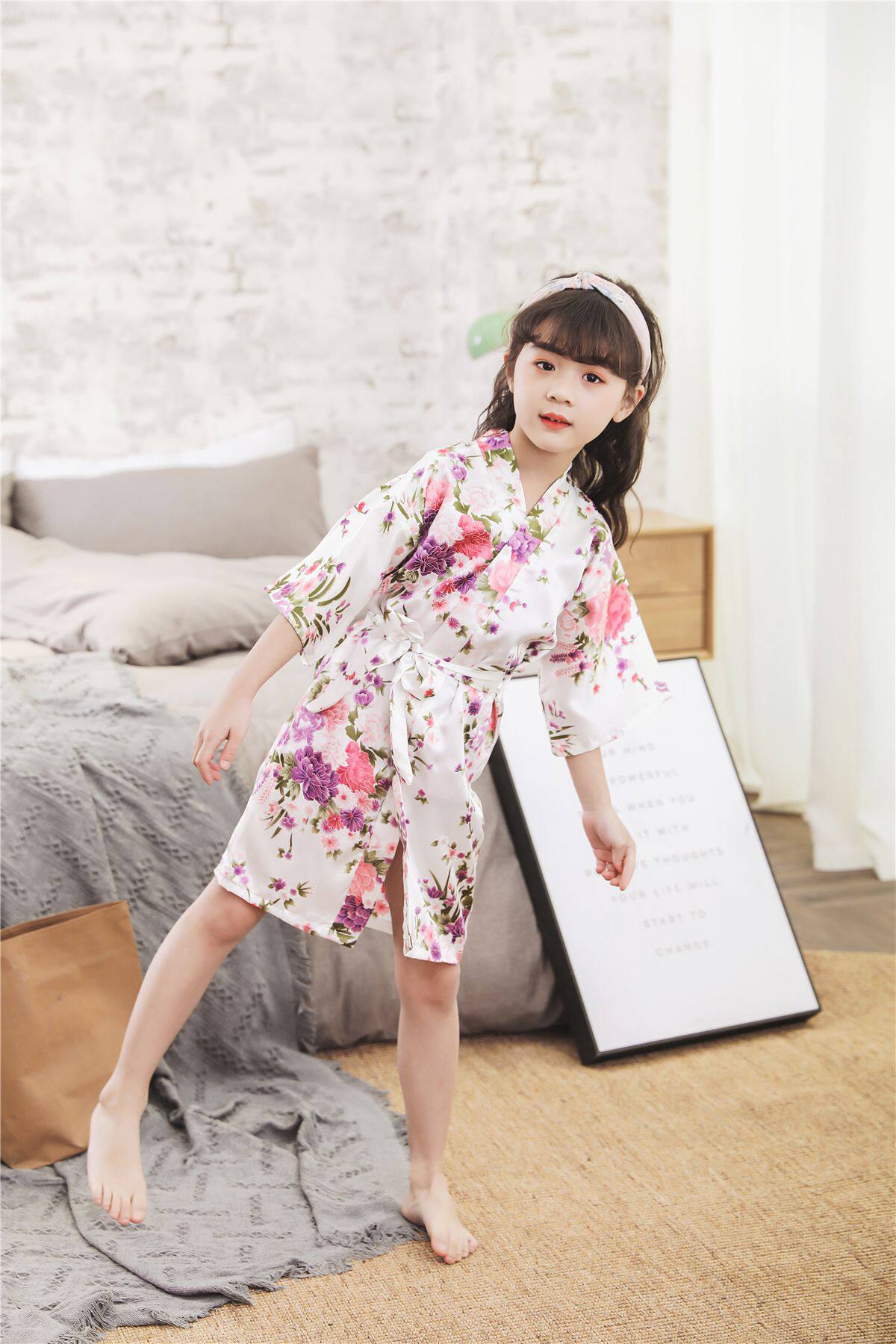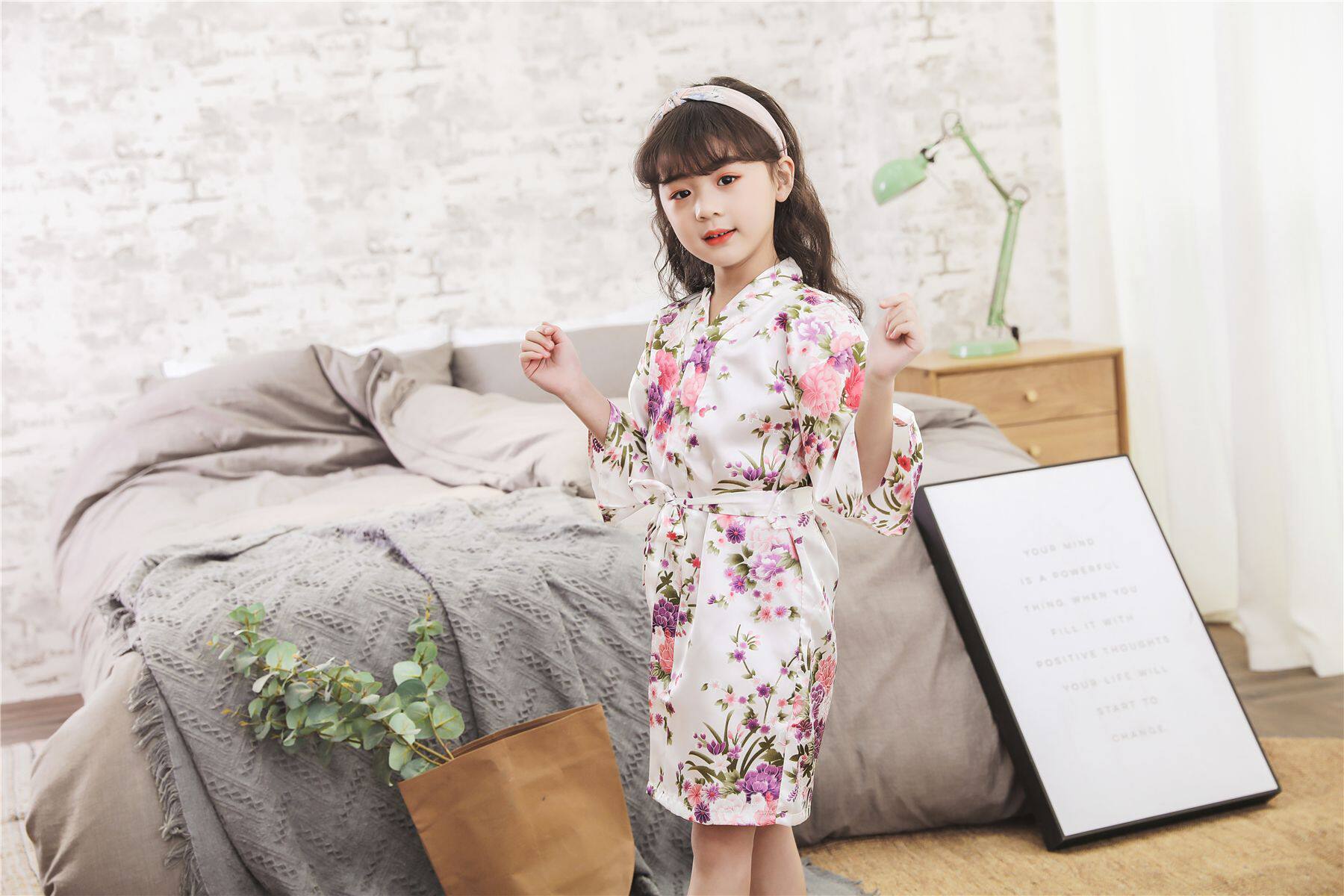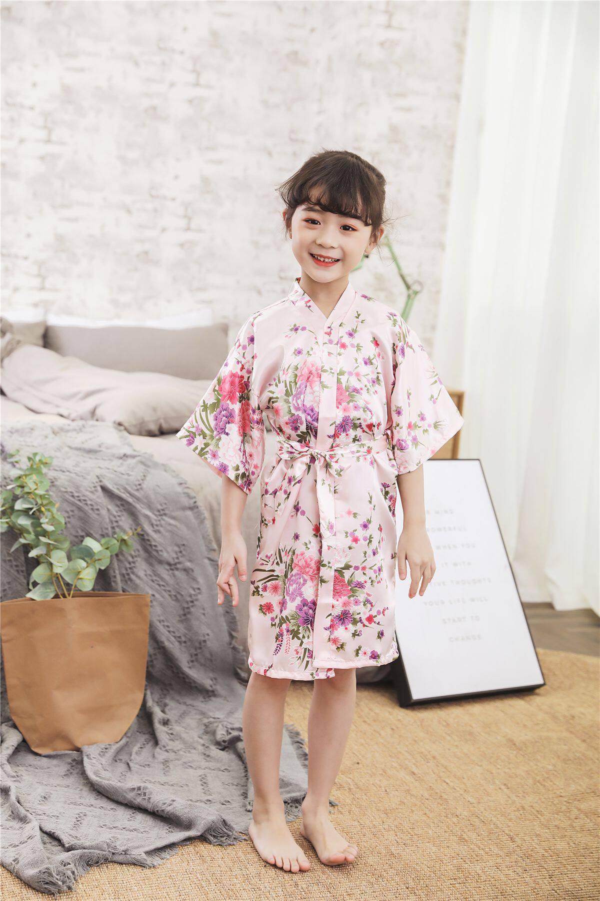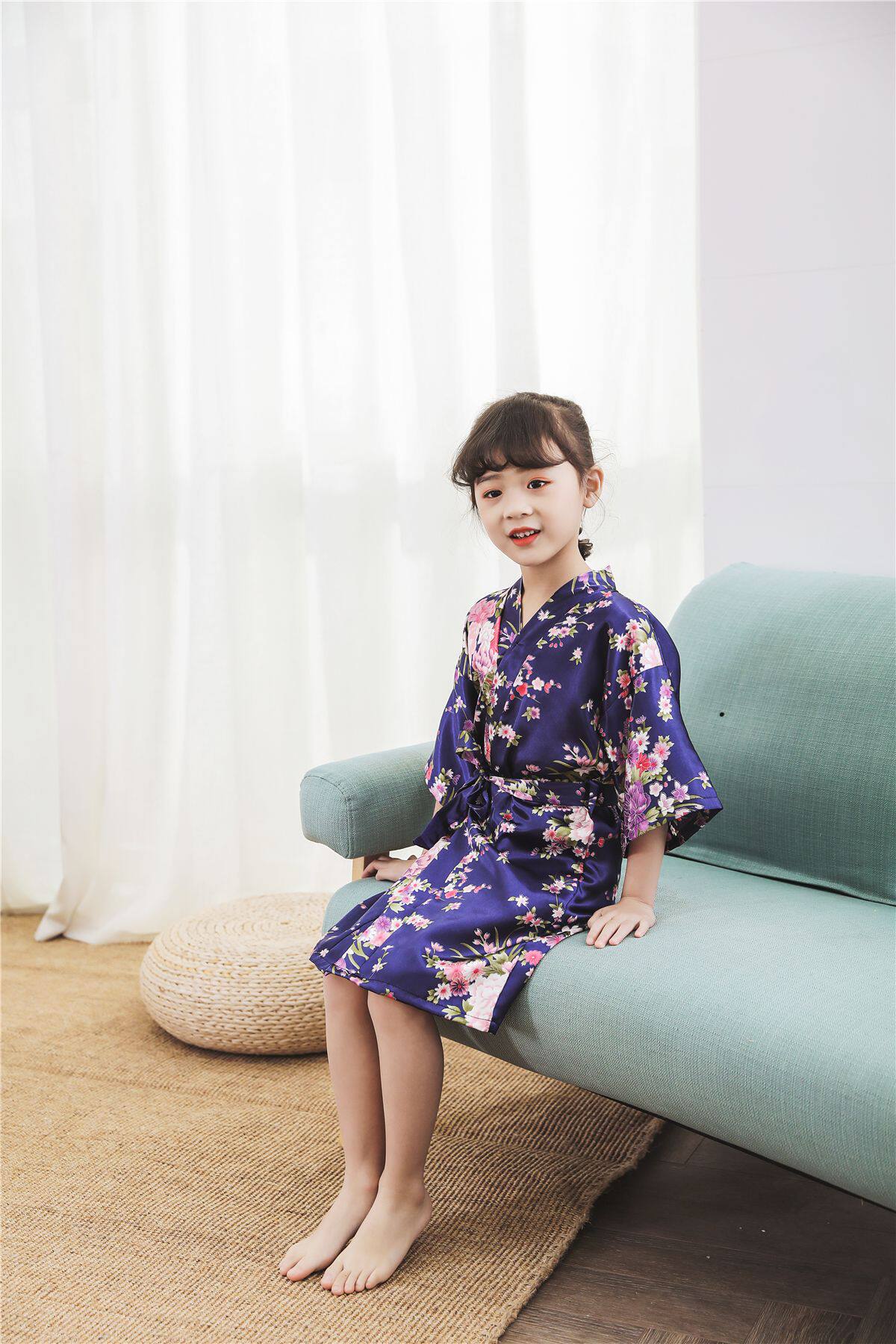 Летний детский шелковый банный халат для девочек, японская пижама, семейный стиль