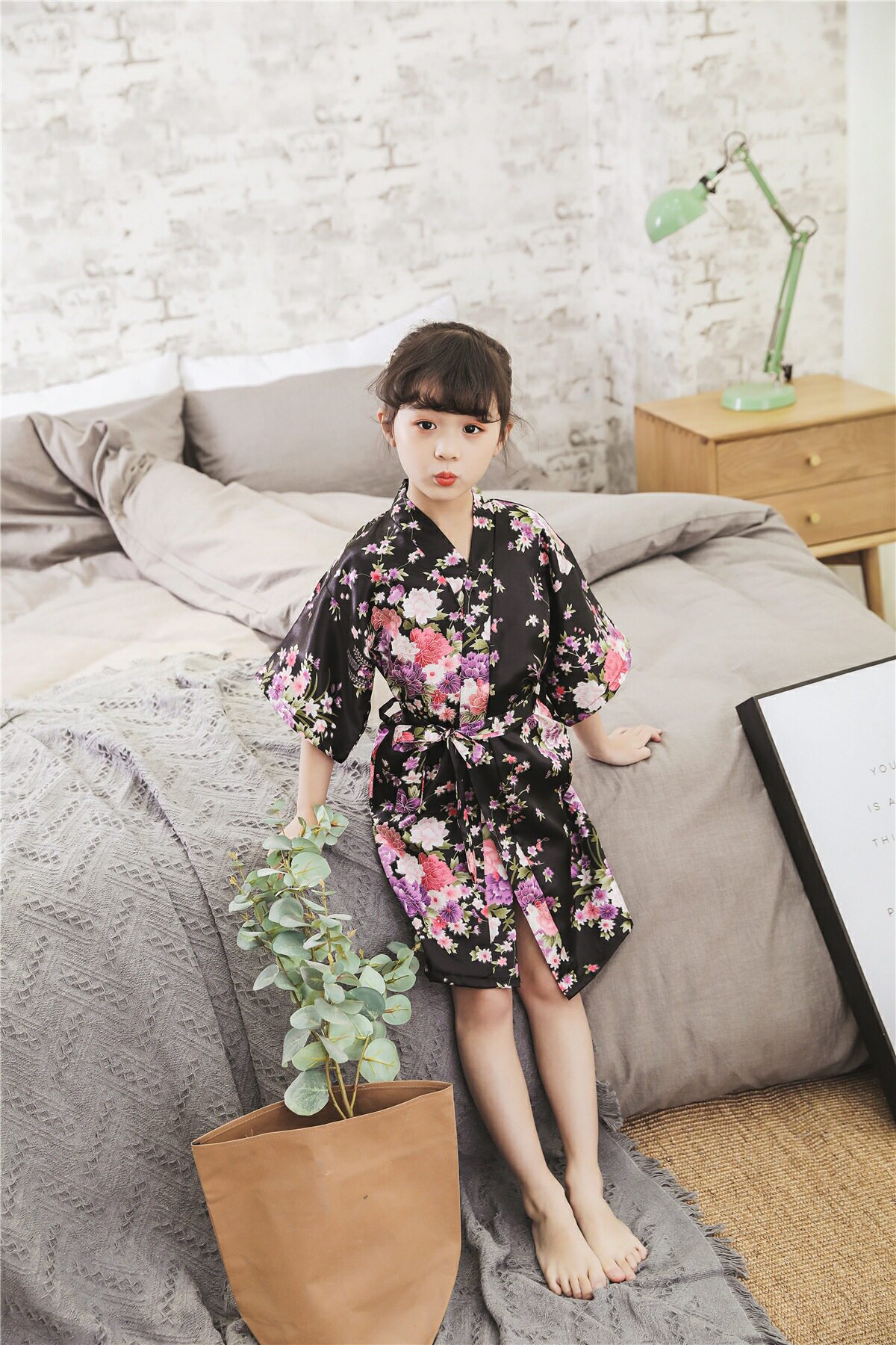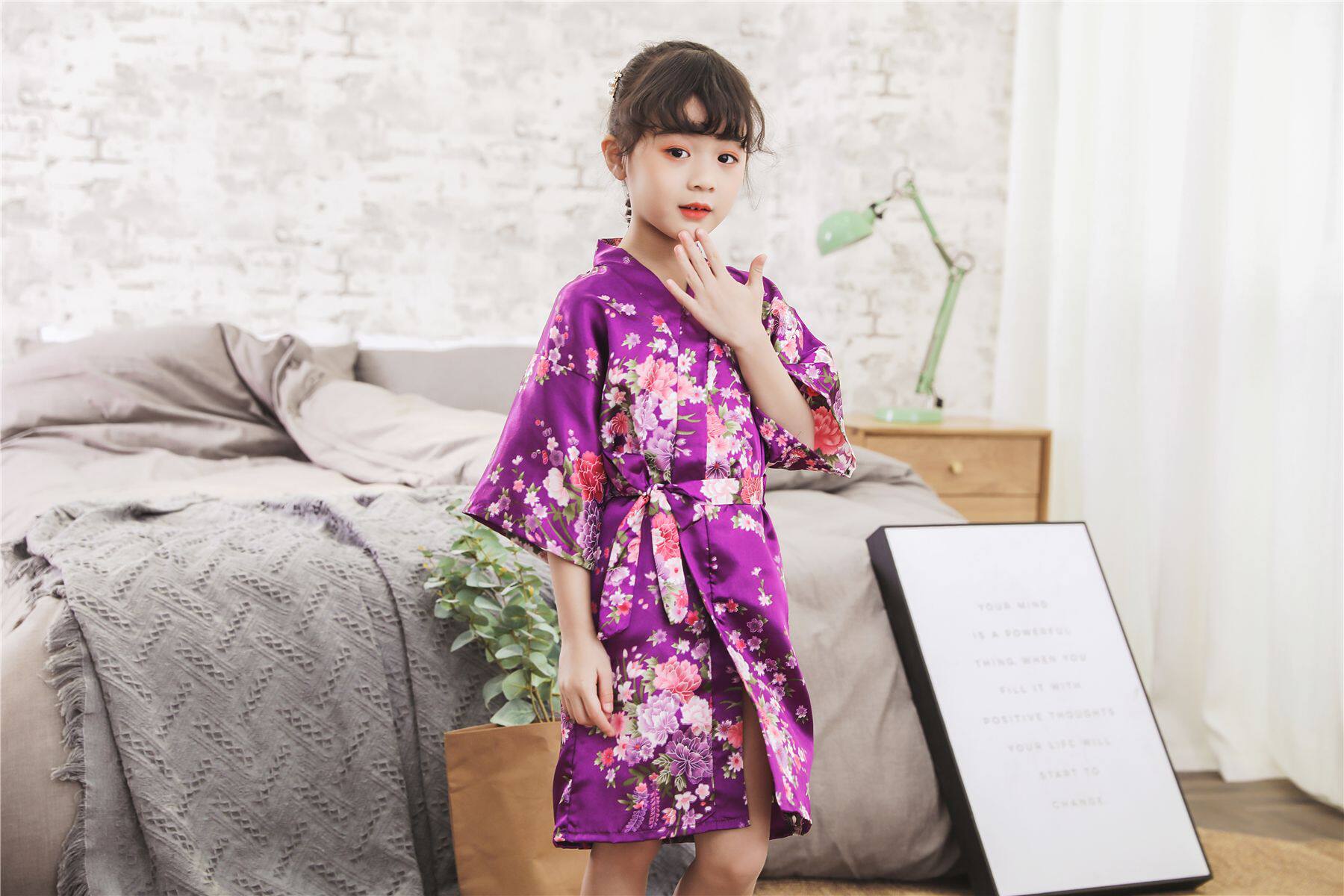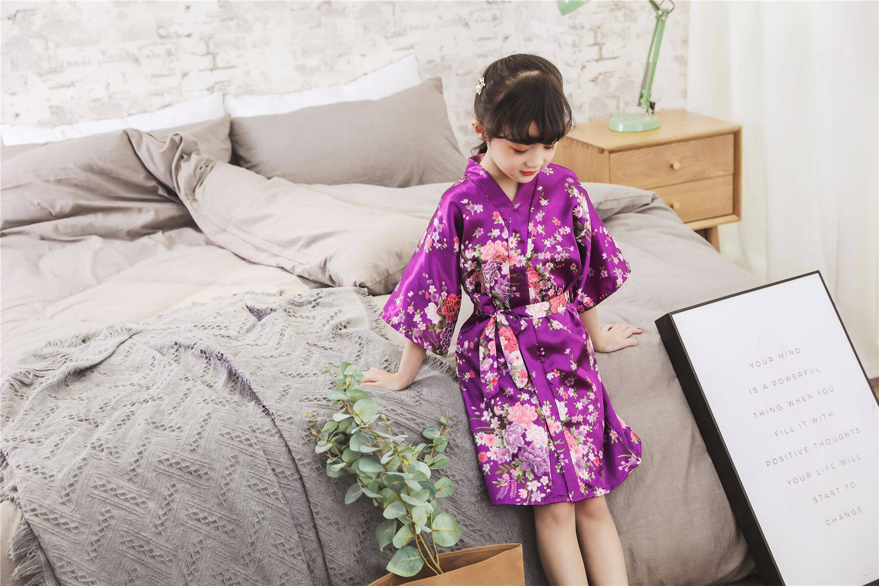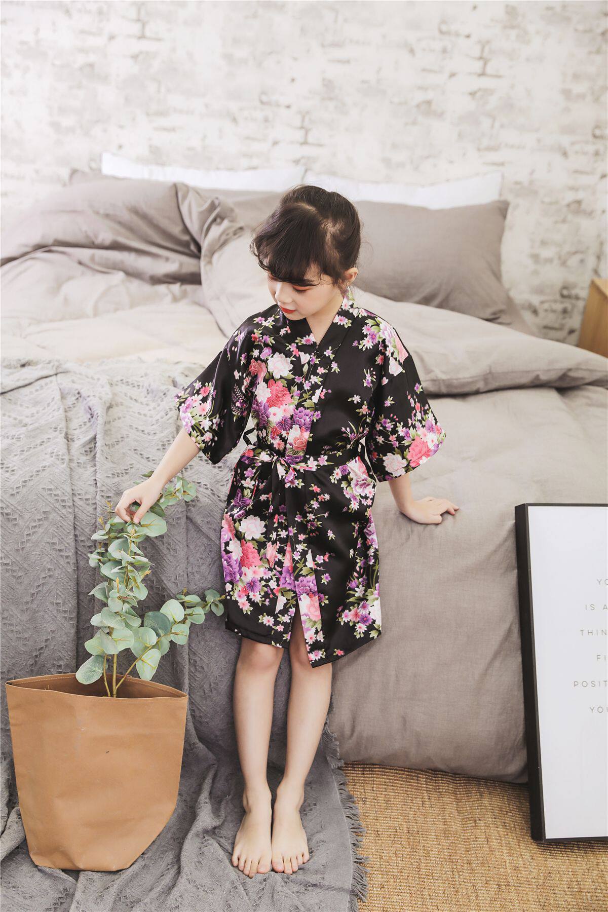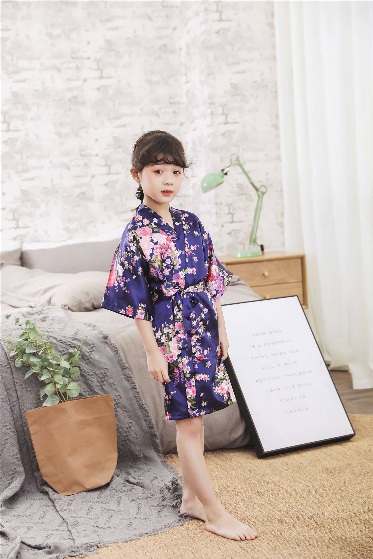 Летний детский шелковый банный халат для девочек, японская пижама, семейный стиль