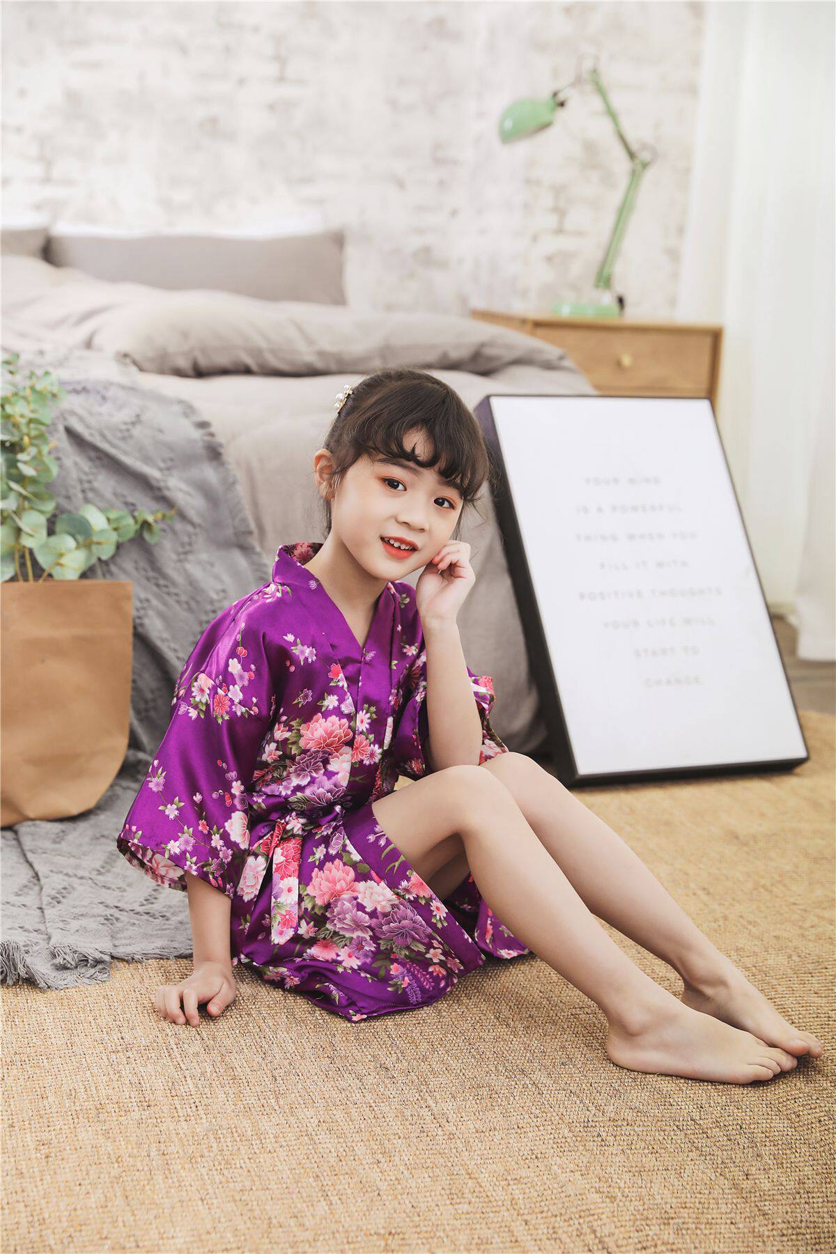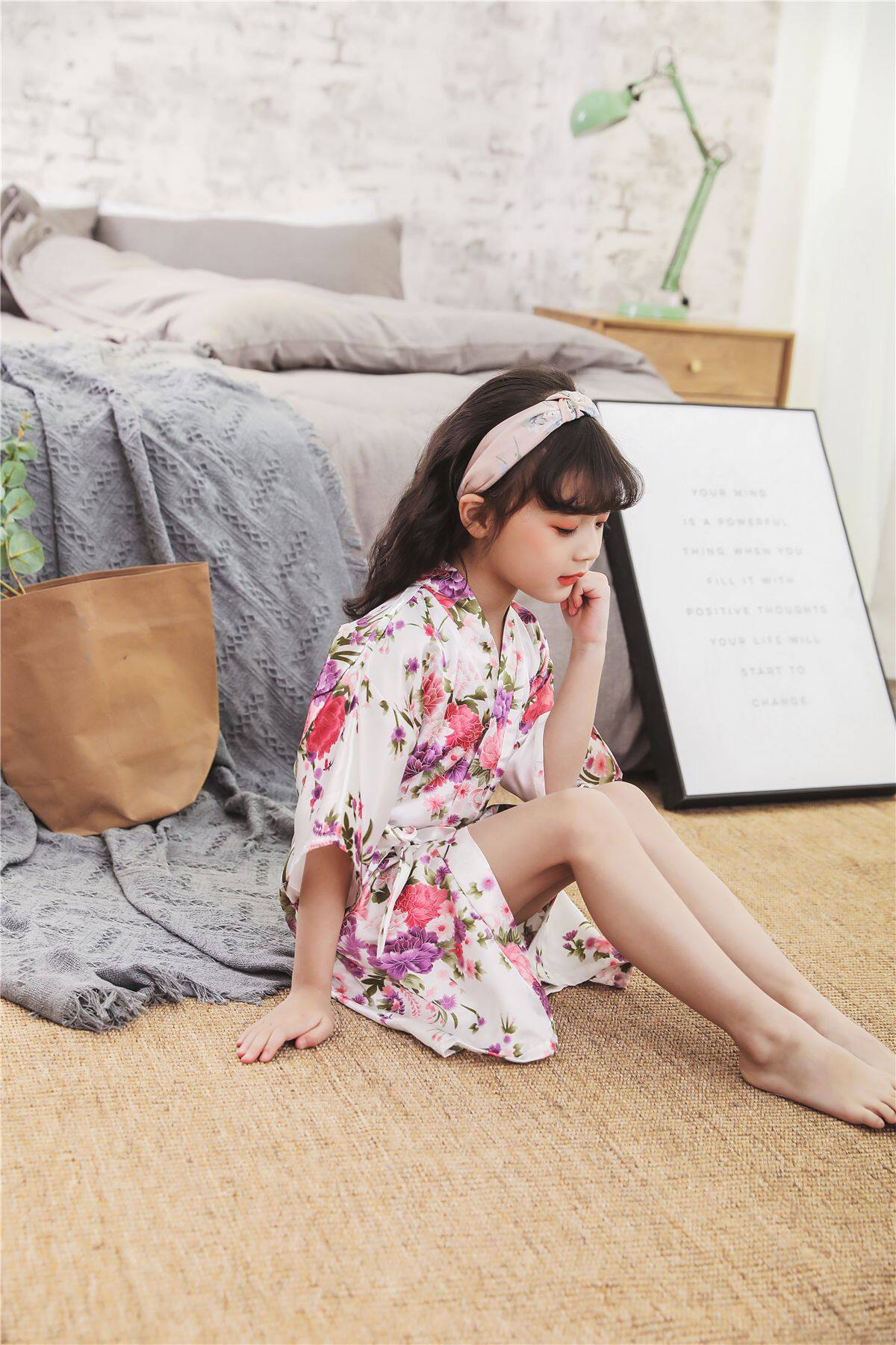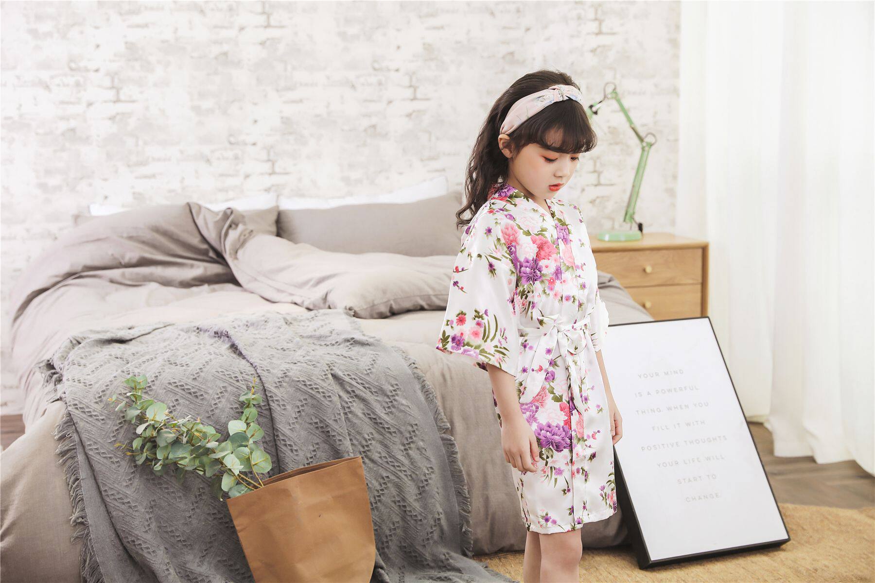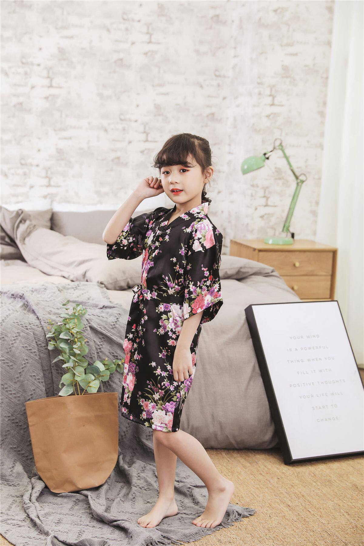 Летний детский шелковый банный халат для девочек, японская пижама, семейный стиль