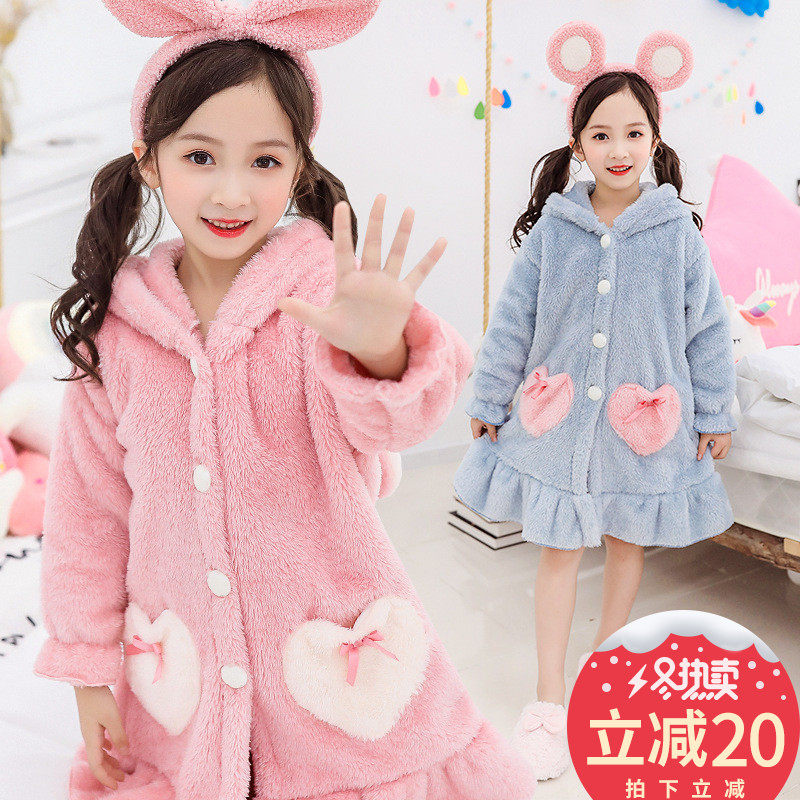 Пижама, зимний детский фланелевый удерживающий тепло банный халат, 2020, подходит для подростков