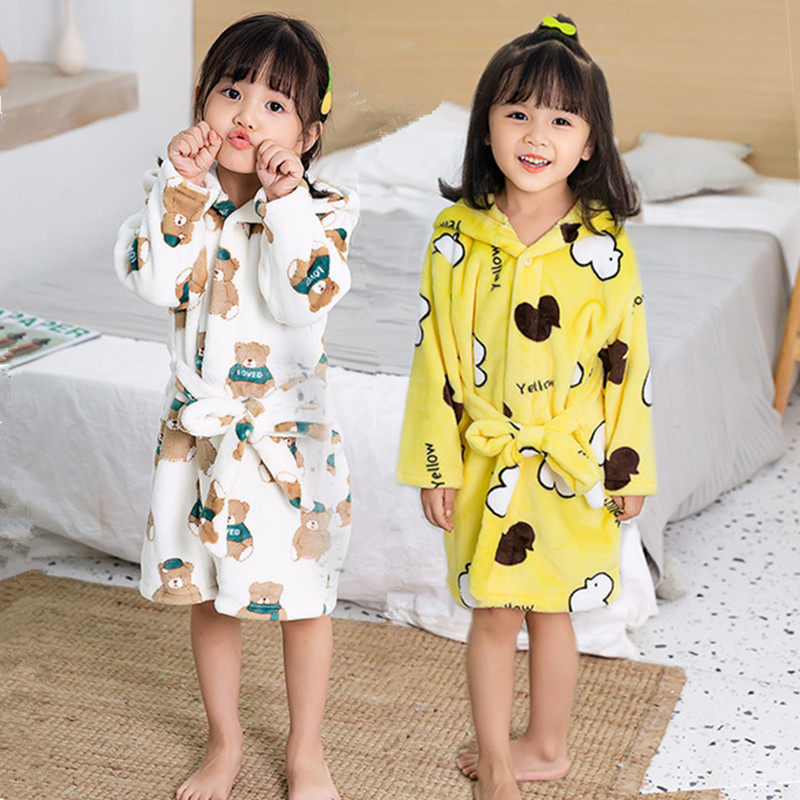 Зимний фланелевый детский коралловый банный халат, детская пижама для мальчиков, осенний, увеличенная толщина