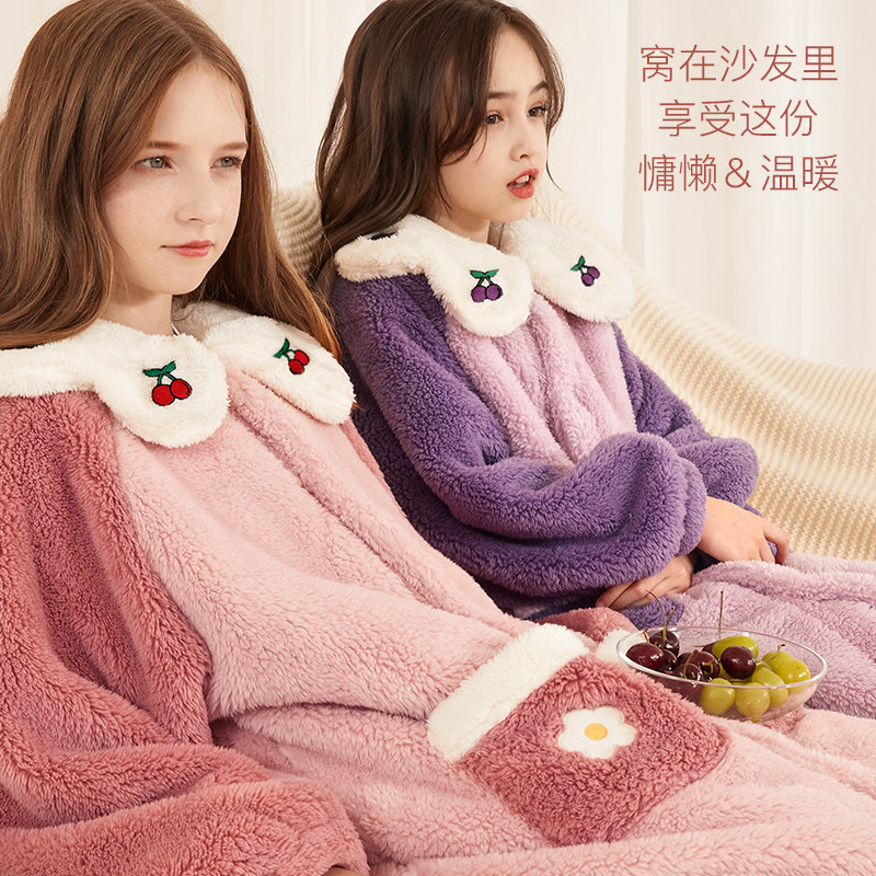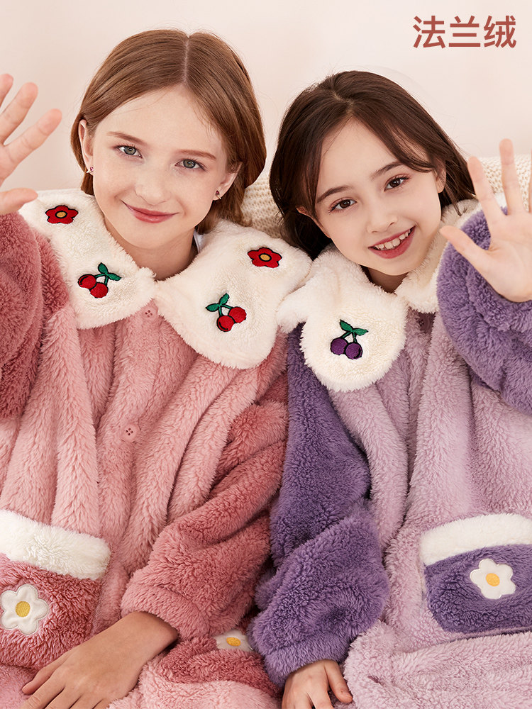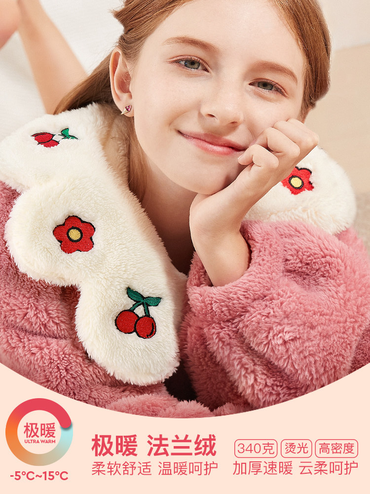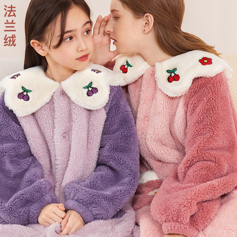 Детский банный халат, коралловая бархатная демисезонная фланелевая длинная пижама, увеличенная толщина, подходит для подростков, семейный стиль