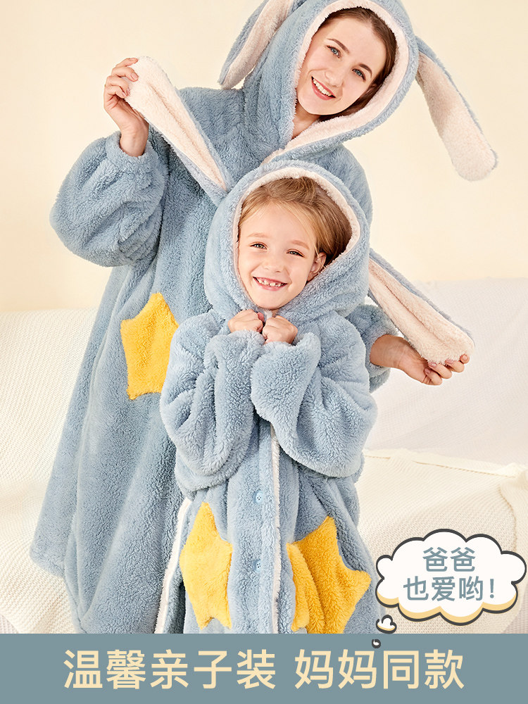 Детский банный халат, коралловая бархатная демисезонная пижама, демисезонное фланелевое детское длинное термобелье, семейный стиль
