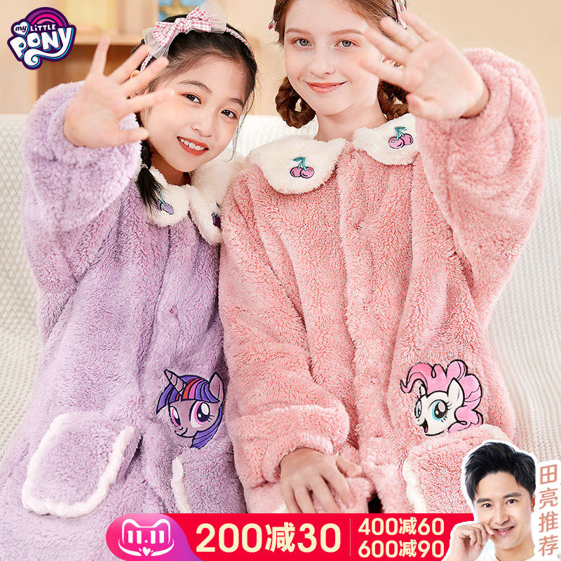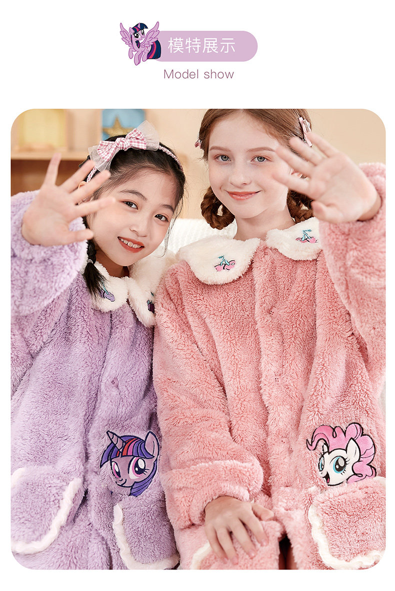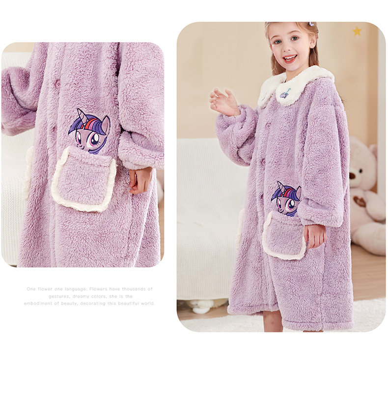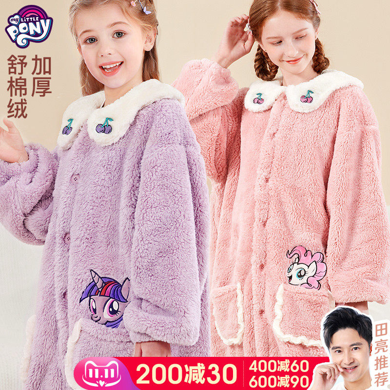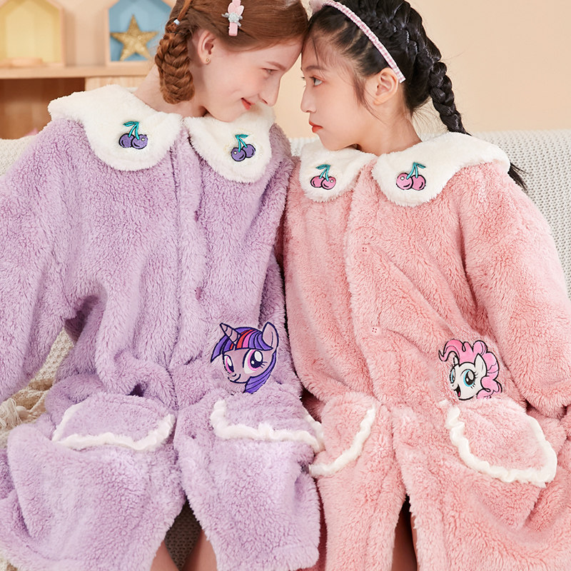Пони, детская пижама, коралловый бархатный флисовый длинный фланелевый демисезонный банный халат, увеличенная толщина