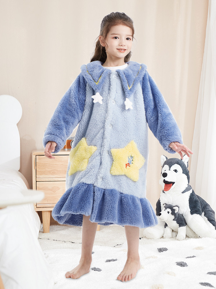 Фланелевая детская пижама, детский демисезонный коралловый бархатный банный халат