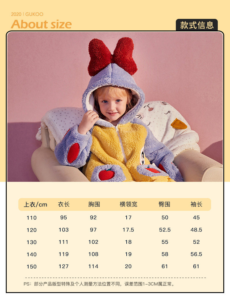 Gukoo/果壳 Пижама для принцессы, коралловый бархатный детский комплект