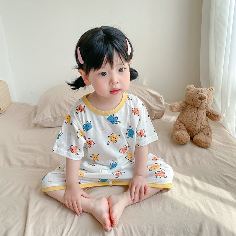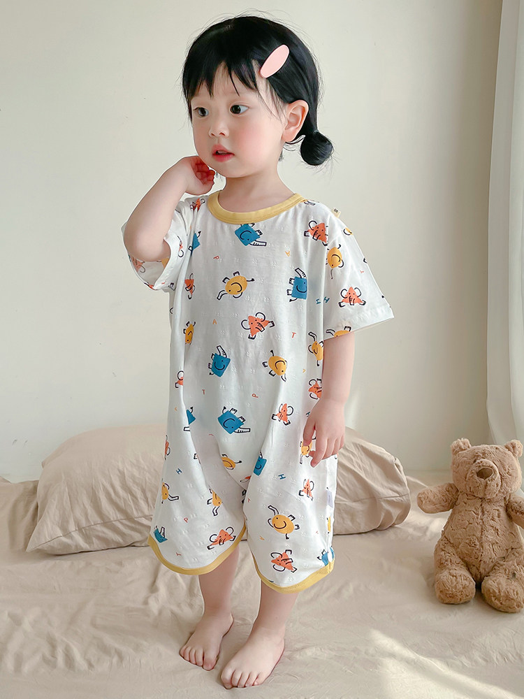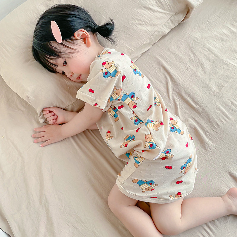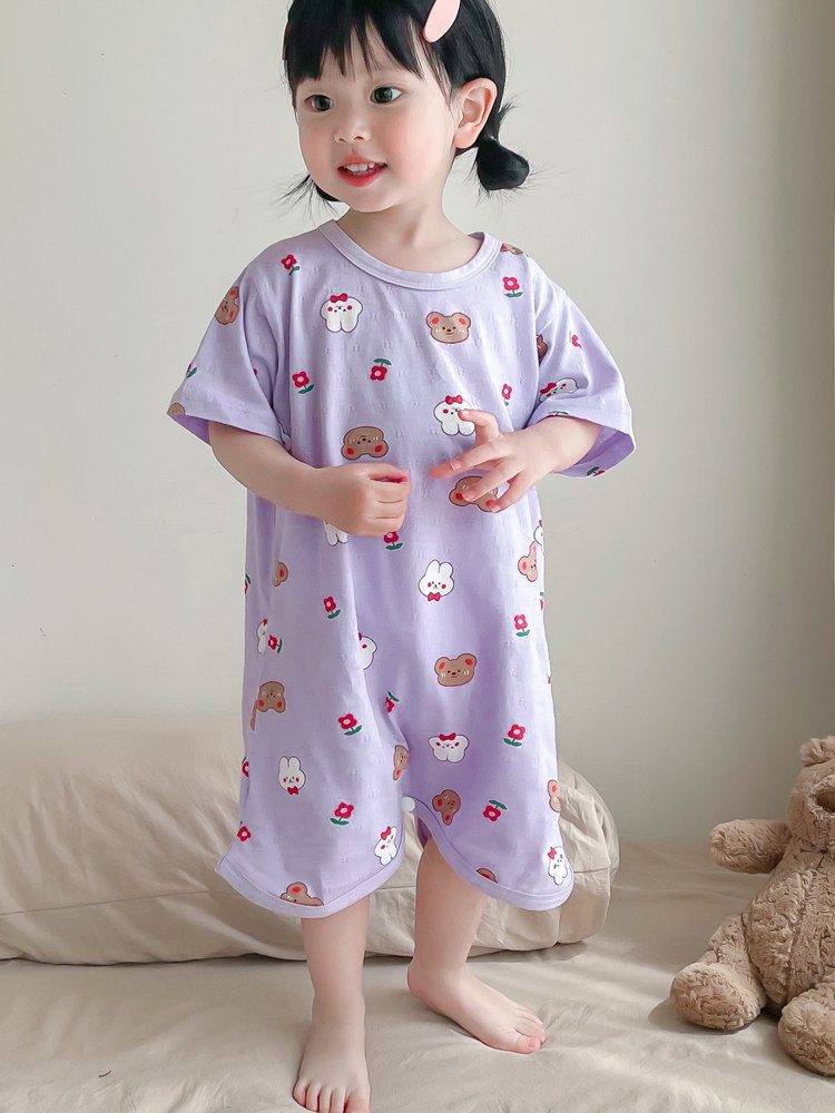 Детская пижама подходит для мужчин и женщин, хлопковая юбка на девочку, летний тонкий банный халат, коллекция 2023, короткий рукав