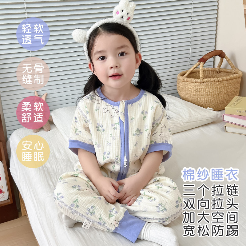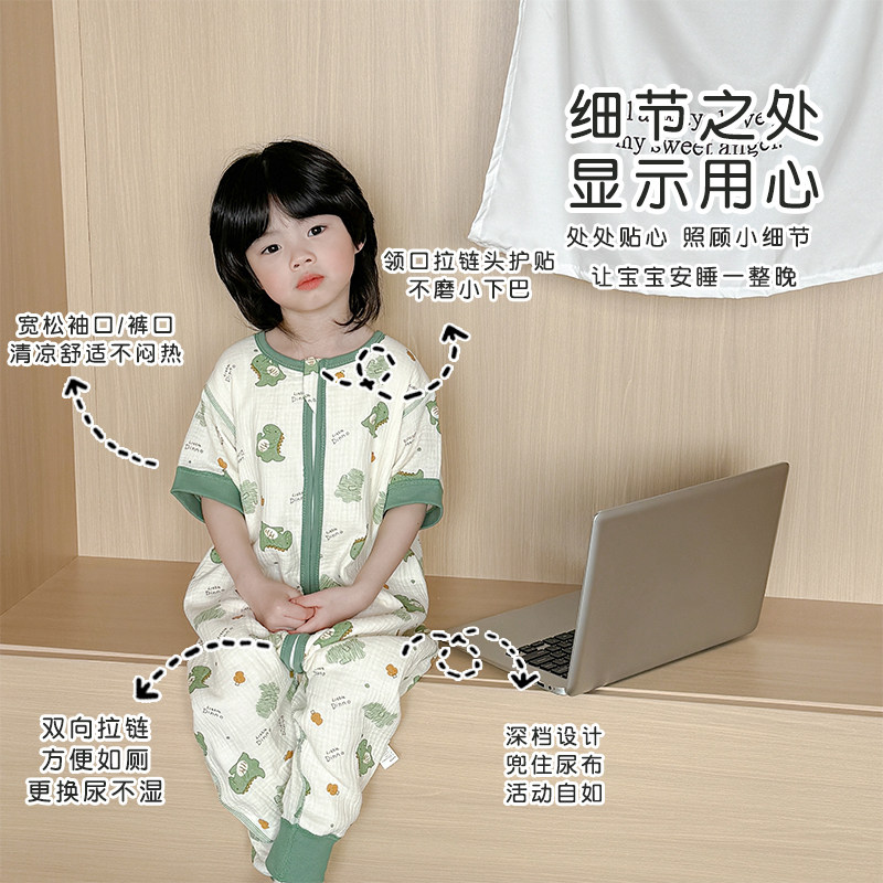 Детская летняя тонкая хлопковая марлевая пижама, детский осенний спальный мешок, короткий рукав
