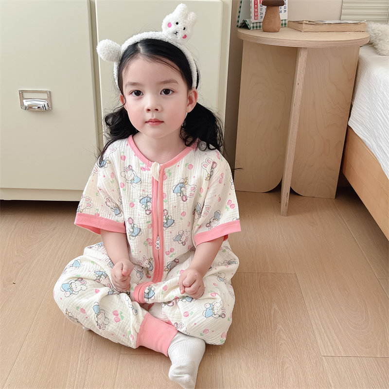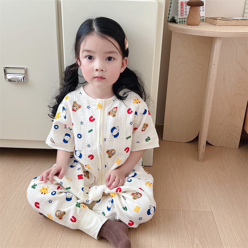 Детская хлопковая пижама, детский тонкий дышащий марлевый спальный мешок