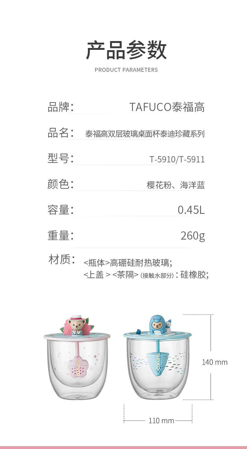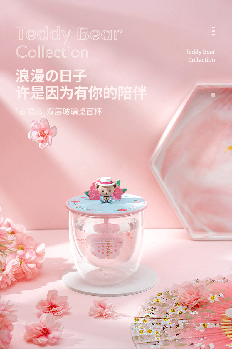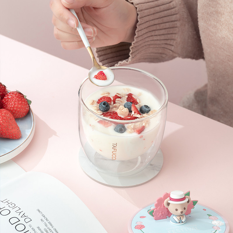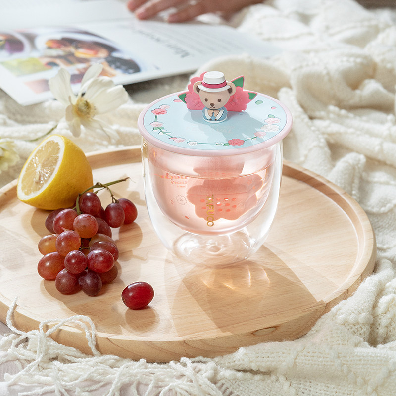 Тедди сакура чашка новая стеклянная чашка Япония Тайфу высокий двойной слой тепловой чашка для водяной стакана молоко чашка молока