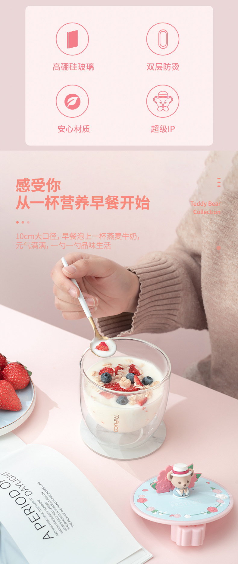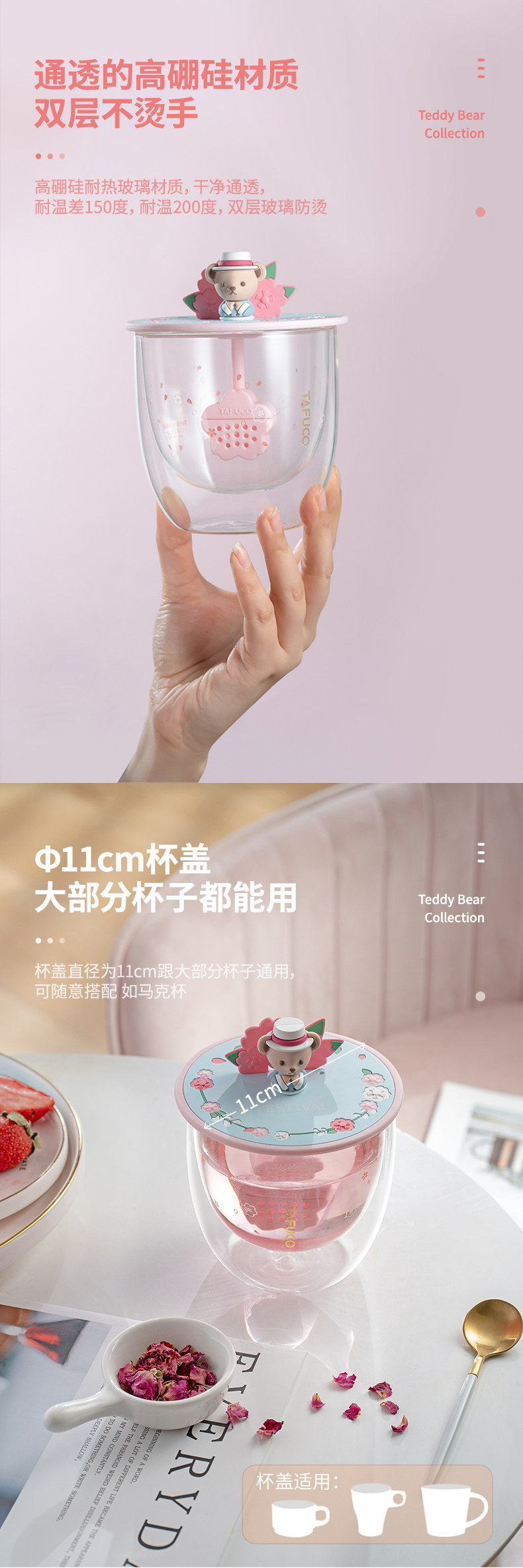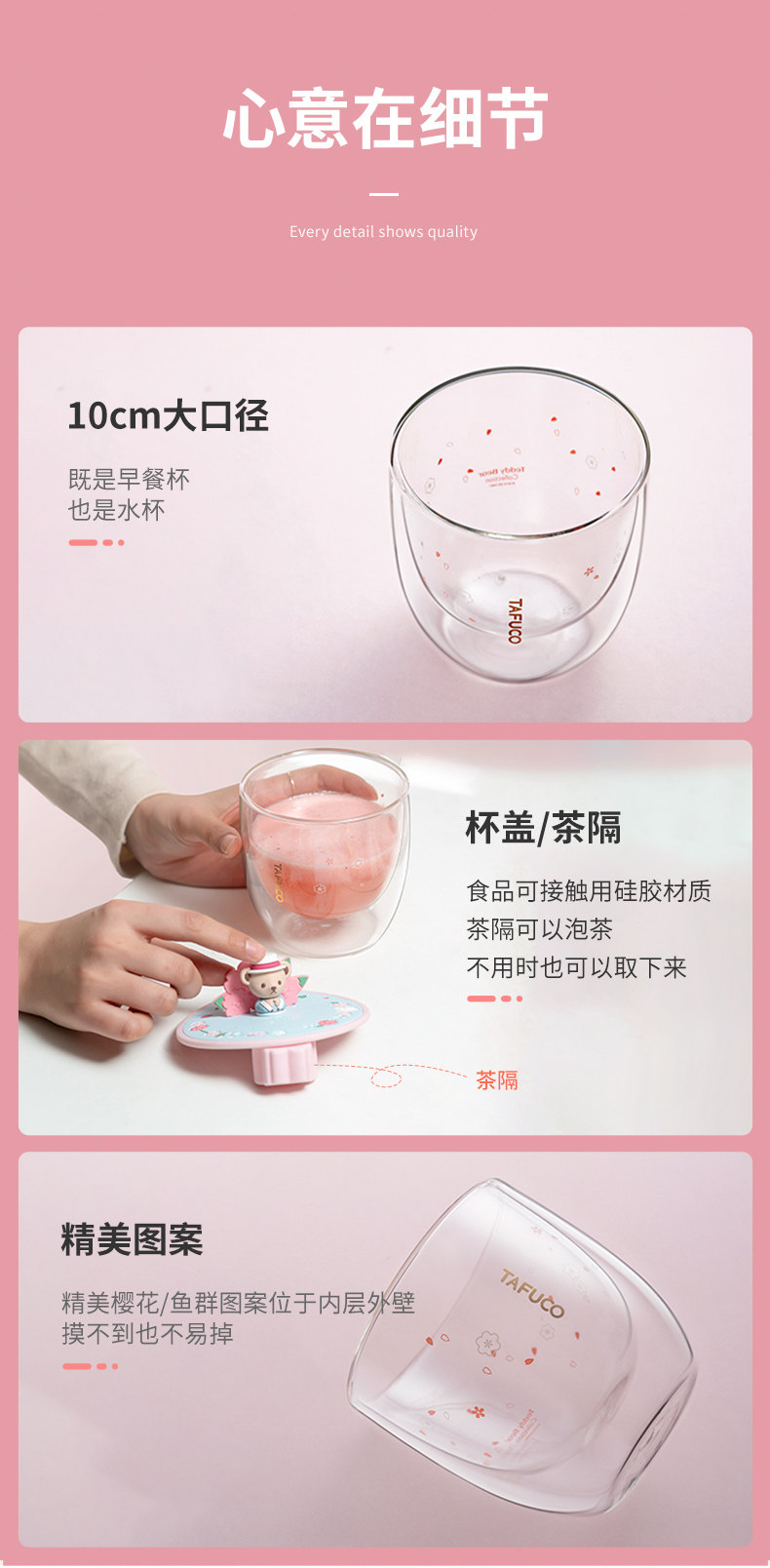 Тедди сакура чашка новая стеклянная чашка Япония Тайфу высокий двойной слой тепловой чашка для водяной стакана молоко чашка молока