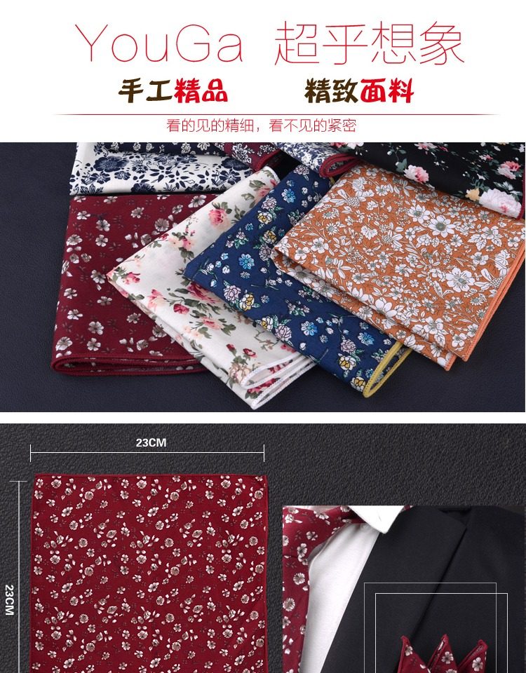 Ретро носовой платок, шарф подходит для мужчин и женщин, костюм, аксессуар, цветочный принт