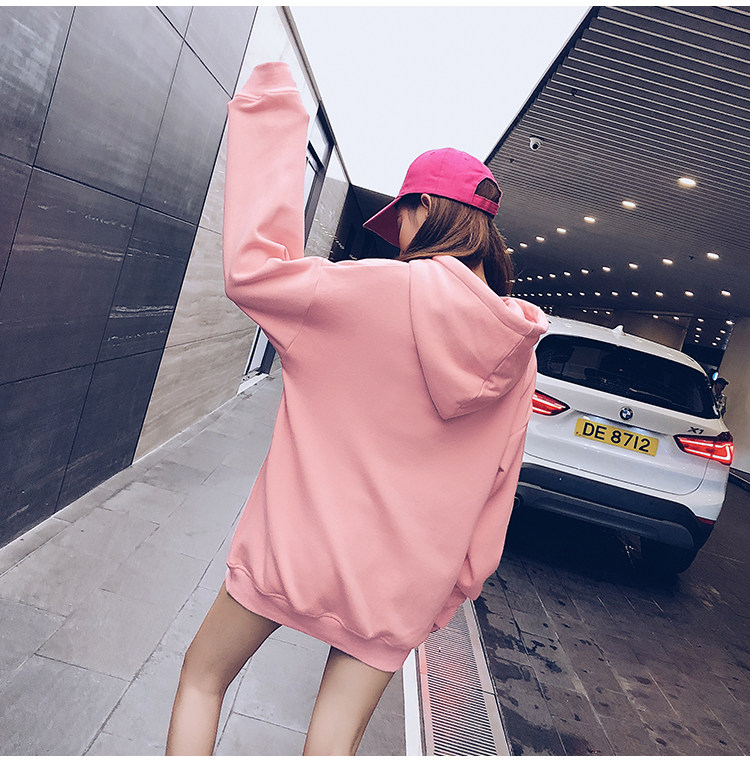 Tide, розовая толстовка с капюшоном, осенний тонкий длинный лонгслив, коллекция 2021, в корейском стиле, средней длины