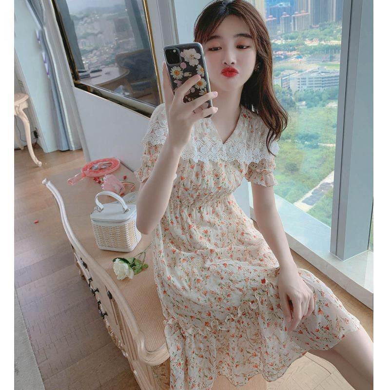 Шифоновое приталенное платье, длинная юбка, французский стиль, яркий броский стиль, цветочный принт, подходит для подростков