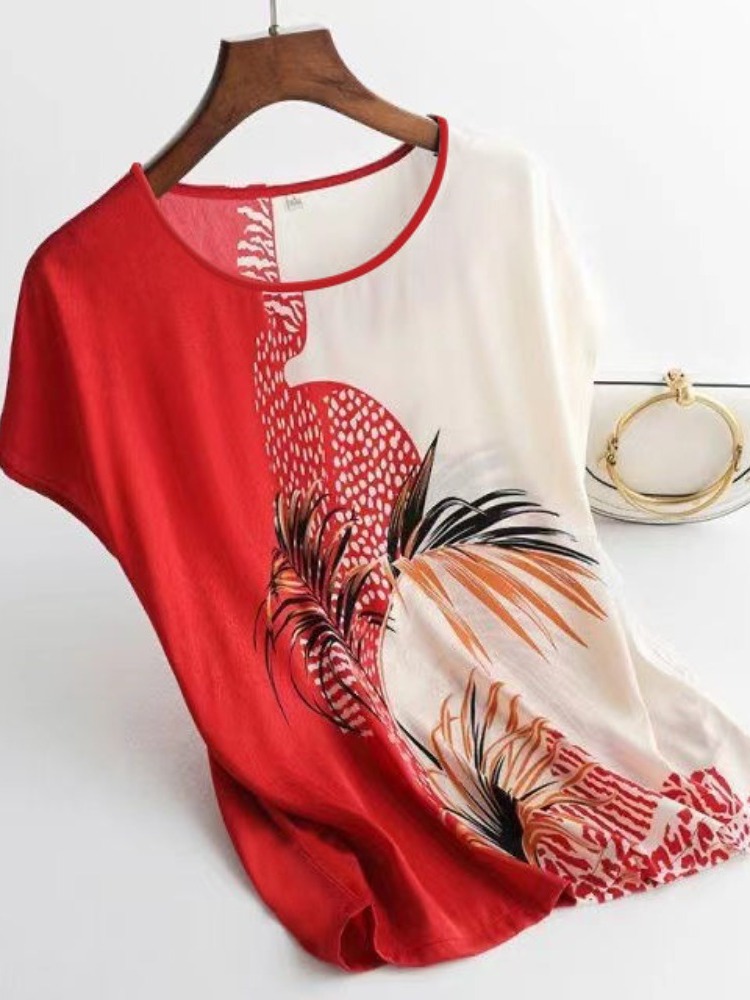 2023 Новые матери притворяются в летнем ледяном шелке, женщинах, средних и пожилых рубашках с большим размером.