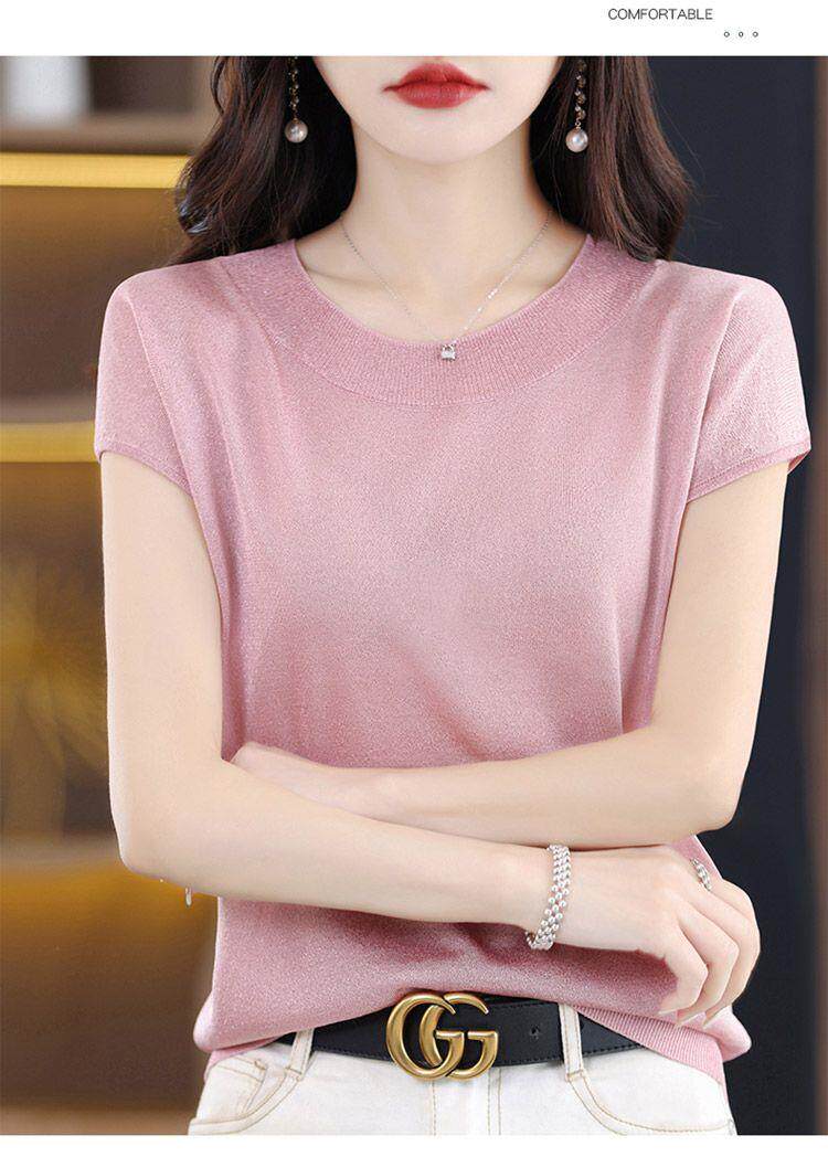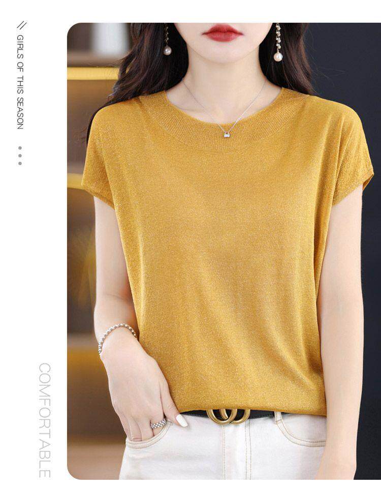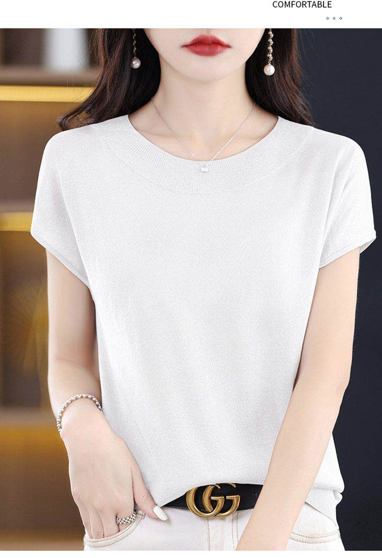 Летняя шелковая футболка с коротким рукавом с круглым воротником, штаны, полотенце, оверсайз