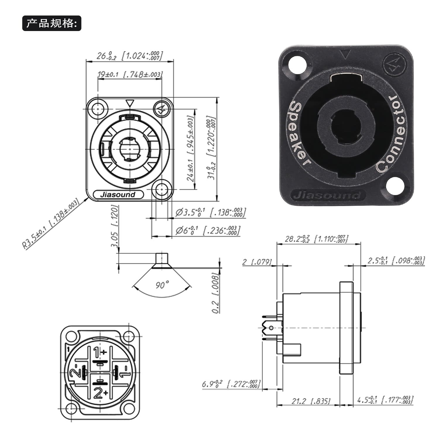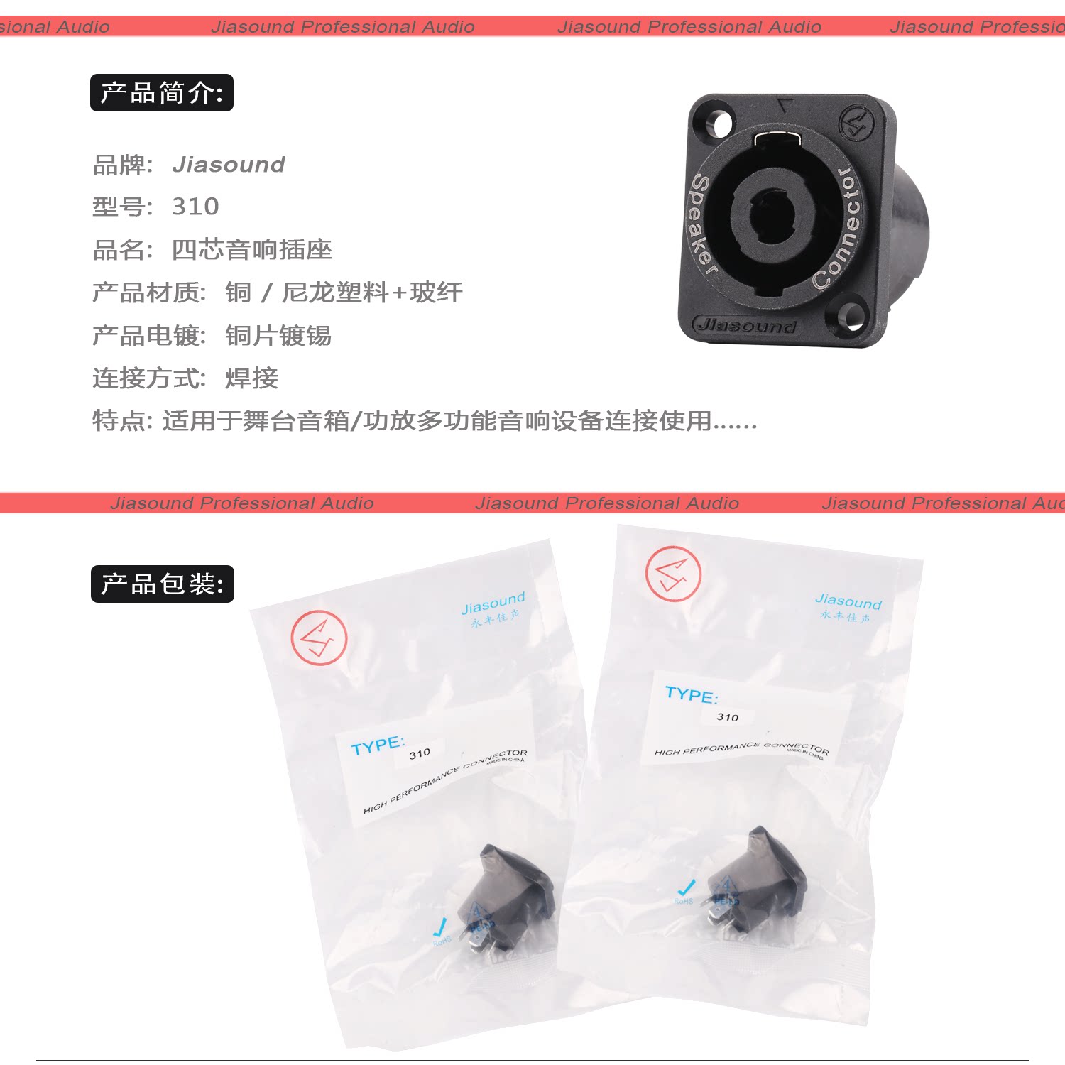 JIASOUND 310 Четырехкорночный динамик Профессиональный розетка Матери Сиденье 4 CORE SOUND LINE CANCER CARD FARMER FARMER HEAD OHM PLUCK