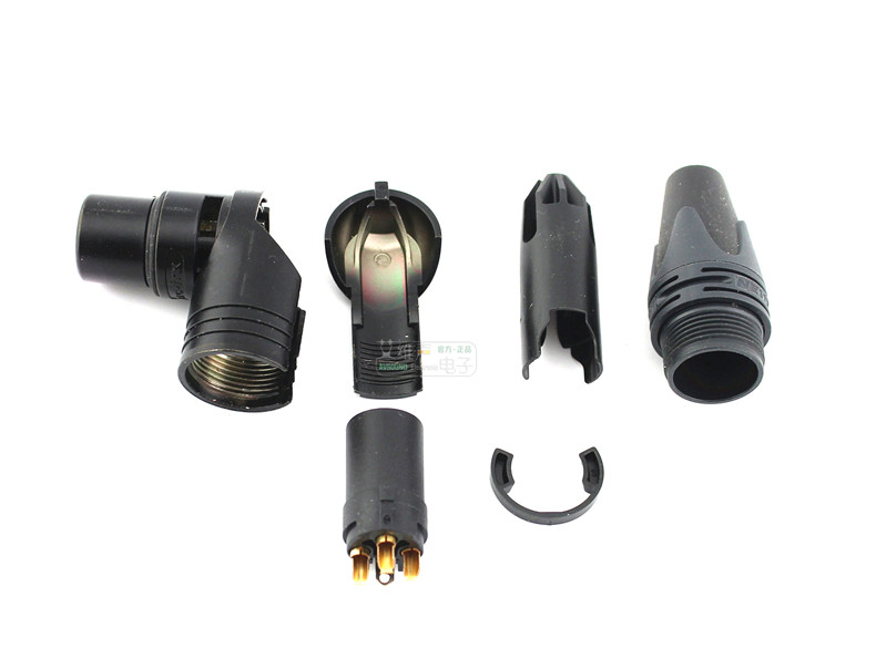 3 -яерный кабельный разъем, правый угол, мать, черная оболочка, наполненный золотом контакт.