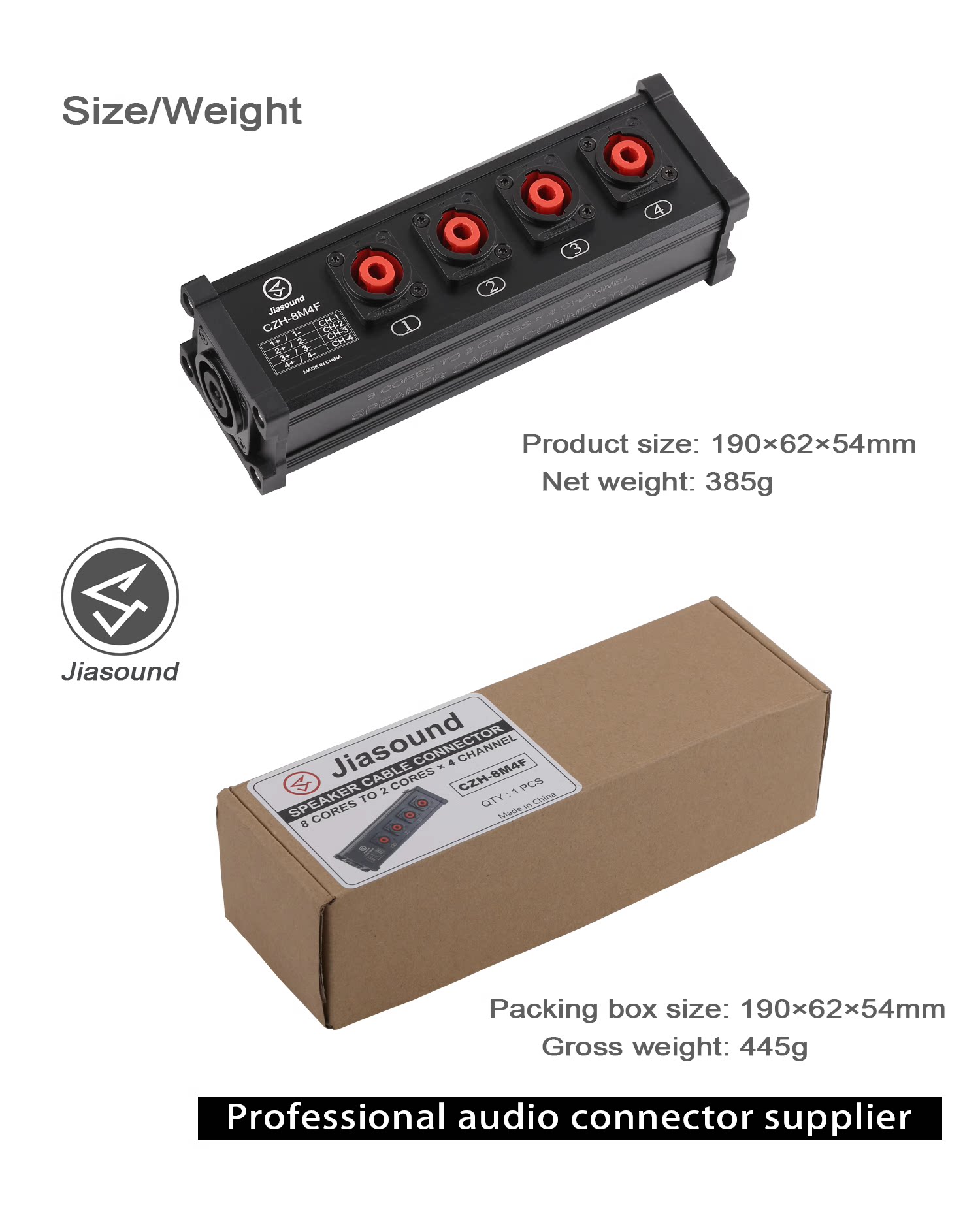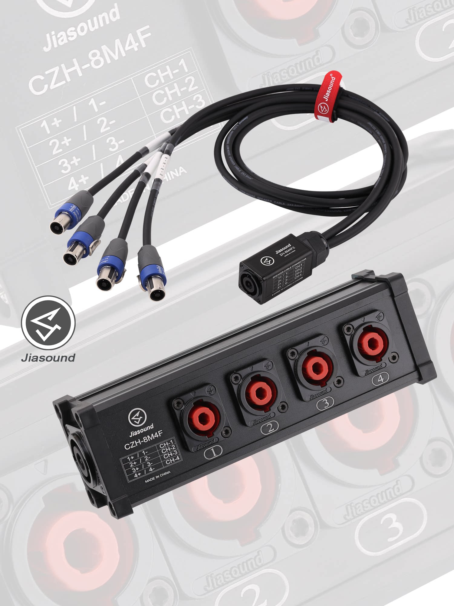Разветвитель пикового кабеля Jiasound с 8 на 2 ядра x 4 канала