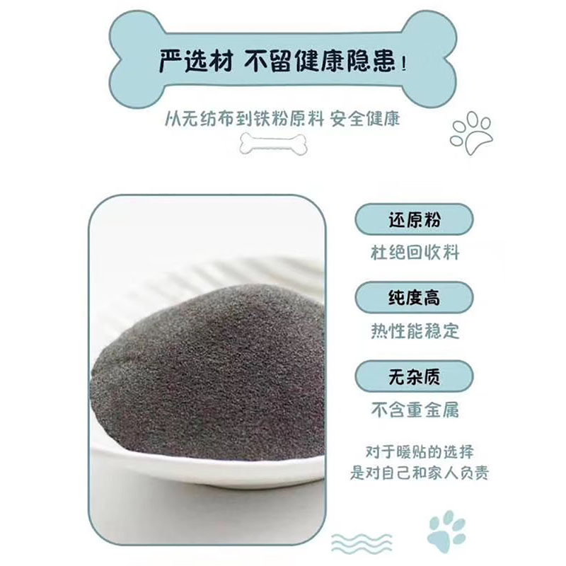 Сырье: железный порошок, вода, активированный уголь, вермикулит, водопоглощающая смола, соль.