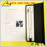 Звуковая вилка“Y” форма стального или алюминиевого сплава вокал, каждыйЗвуковая вилка может излучать разные частоты чистого звука во время вибрации из -за его качества, дифференциальной длины и толщины.Инспекция звуковой вилки является простым и надежным методом проверки для различения природы глухоты или глухоты.Клинические слуховые исследования обычно используются в пяти бранчах частоты С -связывающей, а их частота их вибрации составляет 128, 256, 512, 1024 и 2048 Гц. Среди них часто используются 128 Гц, 256 Гц и 512 Гц.Примечание при проверке: ① Должно ли прыгать верхняя часть вершины звуковой формы; ② Сила ударной должна быть последовательной, не чрезмерная сила и не нажимайте по столу жестко ; 1/3 плоскости руки вибрационной вилки согласуется с вертикальной осью внешнего ушного канала, а устье внешнего ушного канала составляет примерно 1 см от внешнего уша вокруг.Обычно используемые методы проверки следующие: 1.Тест Ринне (RT): также известный как сравнительный тест на руководство Qi Bone, это способ проверить то же руководство ци и кости.Возьмите звуковую вилку C128H или C256, а затем поместите ее в область мастоических синусов, чтобы проверить его навыки кости. Когда звук не услышан, запишите свое время. Немедленно переместите звуковую вилку на 1 см за пределами внешнего уша. его изобретательность слушает.Если вы все еще можете услышать звук, это означает, что руководство по газу длиннее, чем руководство по кости (AC> BC), и говорят, что Линдина положительный тест (RT“ +”) (Рисунок 2-23).Напротив, длинное руководство -длинное (BC> AC), что называется тестом на ссылку отрицательным (RT“ -”).Нормальное руководство по популярности в 1-2 раза длиннее, чем время наведения кости. Оно положительно для теста на линдана. В проводящей глухоте возникает дисфункция QI, наведение кости длиннее ци, что отрицательно. Он короче, чем обычно, а звук Слабо. Таким образом, это коротко.“±&Rdquo;) также проводит глухоту.Рисунок 2-23 Если тест Ринне представляет собой тяжелый датчик и невротическая глухота, звук QI и наведения кости нельзя услышать. Направление кости пациента в основном исчезло, но волны вибрации могут передаваться на противоположное здоровье через краниальное кость на противоположную сторону.2Тест Вебера (WT): также известный как тест смещения костей, он сравнивается с силой двух ушной кости.Возьмите вибрирующую вилку C128 Гц, C256 или C512 в нижней части лба или верхней части головы, чтобы звук пациентов для сравнения ушей был громче. В середине нет смещения для наведения кости; потому что QI Руководство имеет эффект компенсации костей, существует препятствие для руководства по ушным газам при проведении глухоты, и оно не может компенсировать навыки кости. ER; когда сенсорная нервная глухота имеет поражения из -за сенсорных органов, звук звука уха сильное, и звук смещен в сторону здоровья уха (рис. 2-24).За исключением описания текста, он может быть доступен“” укажите сторону смещения, используйте“=“ представляет.   (1) частичные уши   (2) Частичное здоровье ухо 2-24 Weber Test 3.Тест Швабаха (ST): также известный как сравнительный тест на руководство кости, время для большего числа нормальных людей и пациентов, ручка шага вибрации C256 помещается на пациент и область торговли пациента и эксперта. Для сравнения. , эти два равны; если время наведения пациента продлевается, альтернативный т