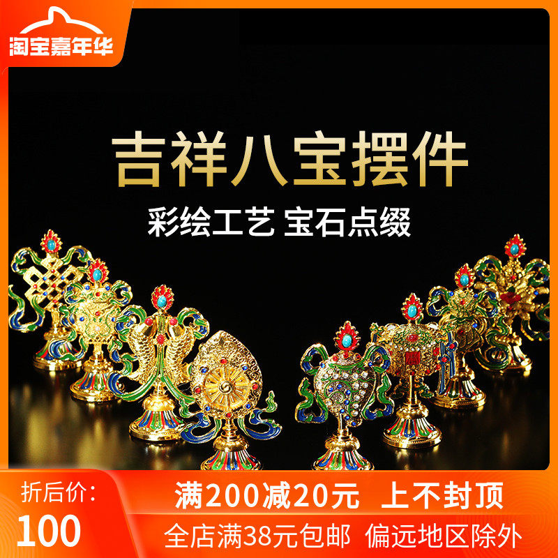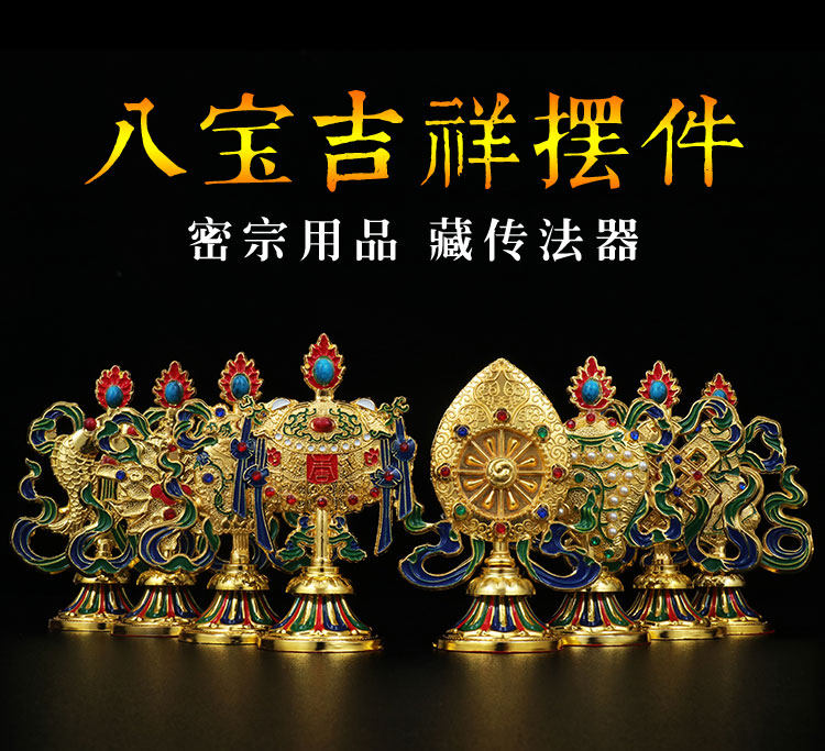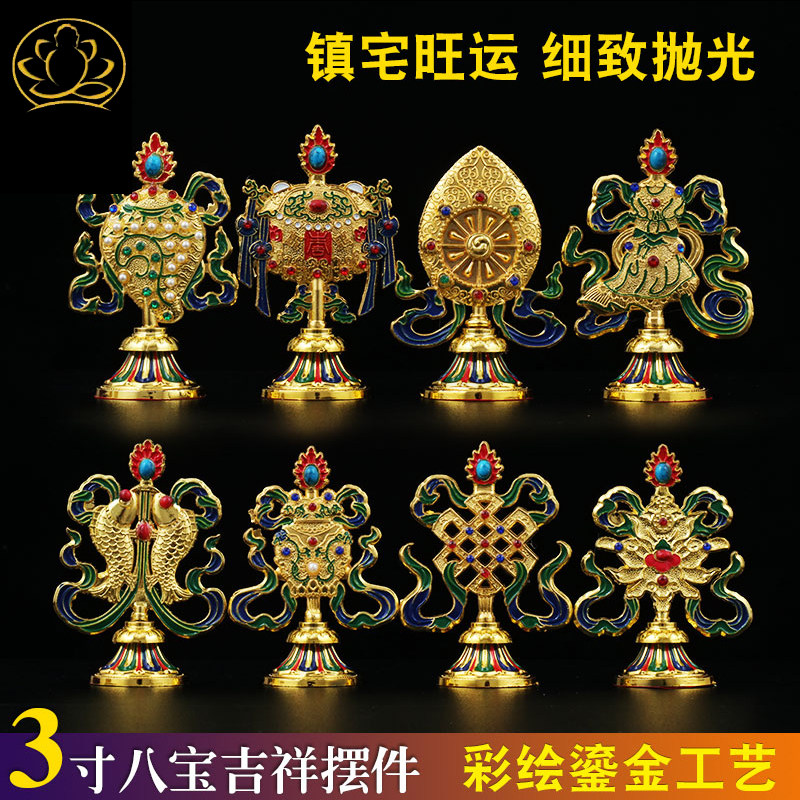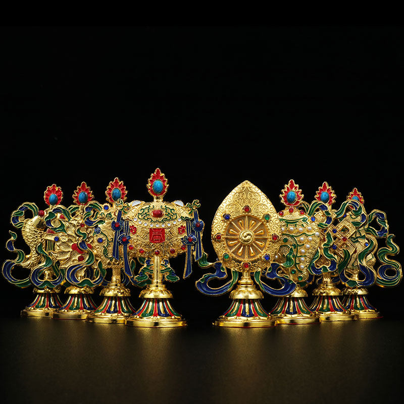 Тибетские тибетские тибетские тибетские в стиле золото, окрашенные благоприятные восемь сокровищ и восемь благоприятностей для декоративных украшений Дхармы 10 см.